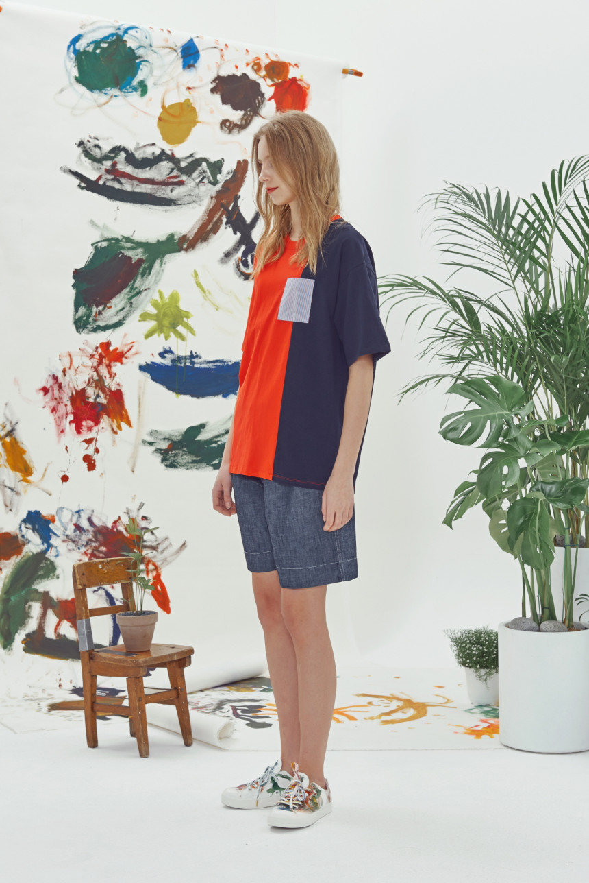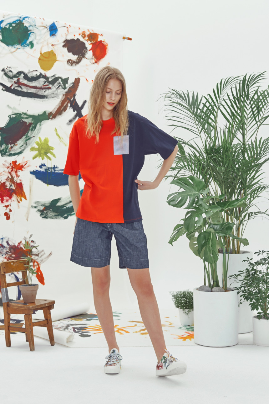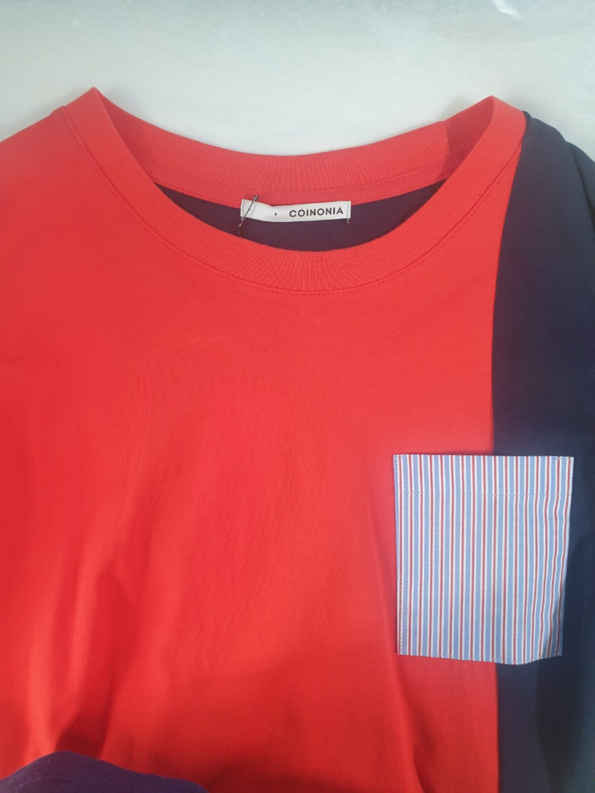 두가지 칼라의 최고급 면소재를 사이드 절개라인 없이 앞쪽과 뒤쪽에서 연결하여 만든 심플하면서도 독특한 티셔츠입니다. 옆쪽에서는 한가지 칼라만 보여지고 앞쪽에서는 두칼라와 작은 포인트 포켓이 보여지는 재미있는 디자인입니다. 루즈한 핏의 티셔츠며 아래 햄라인으로 갈수록 살짝 좁아지면서 햄라인 핏을 잡아줍니다.