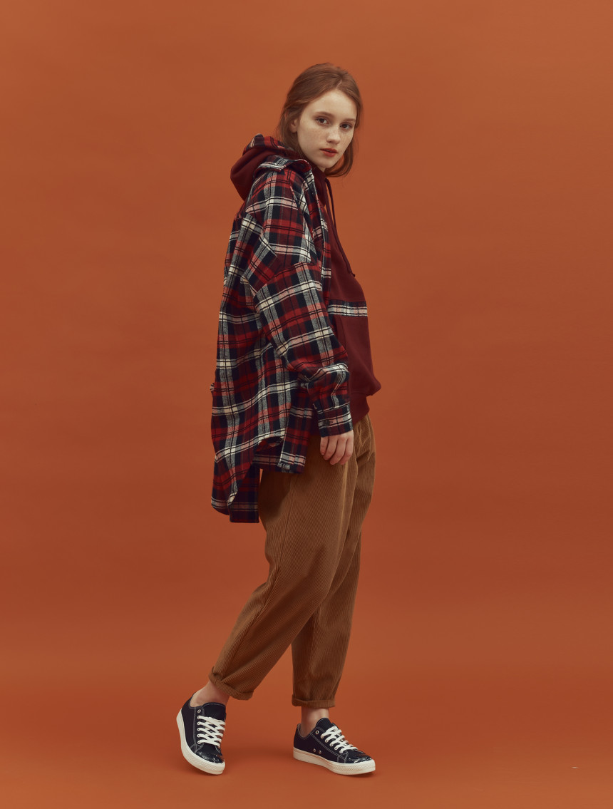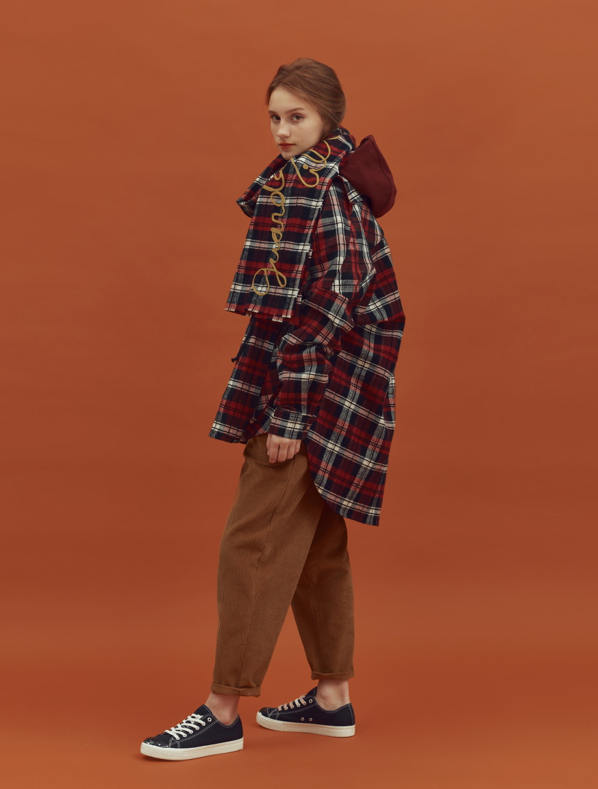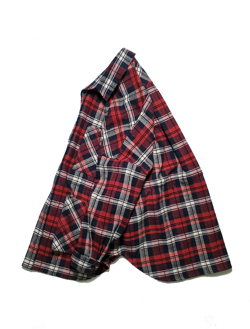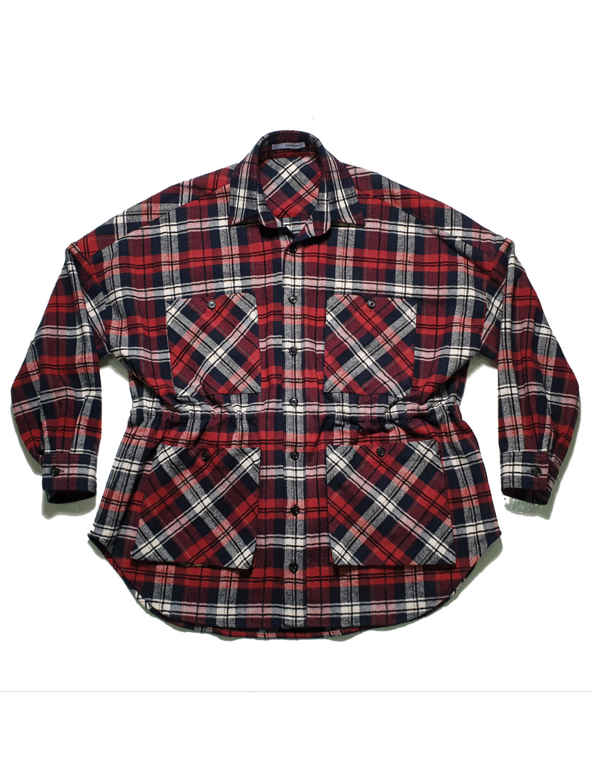 남성복 사파리 쟈켓 아이템의 느낌을 유니섹스 셔츠 쟈켓으로 재구성한 제품입니다. 10수 정도의 짧은 기모 타탄 체크의 두툼한 코튼 소재로 가을, 겨울,봄까지 입기에 적합한 아이템입니다.