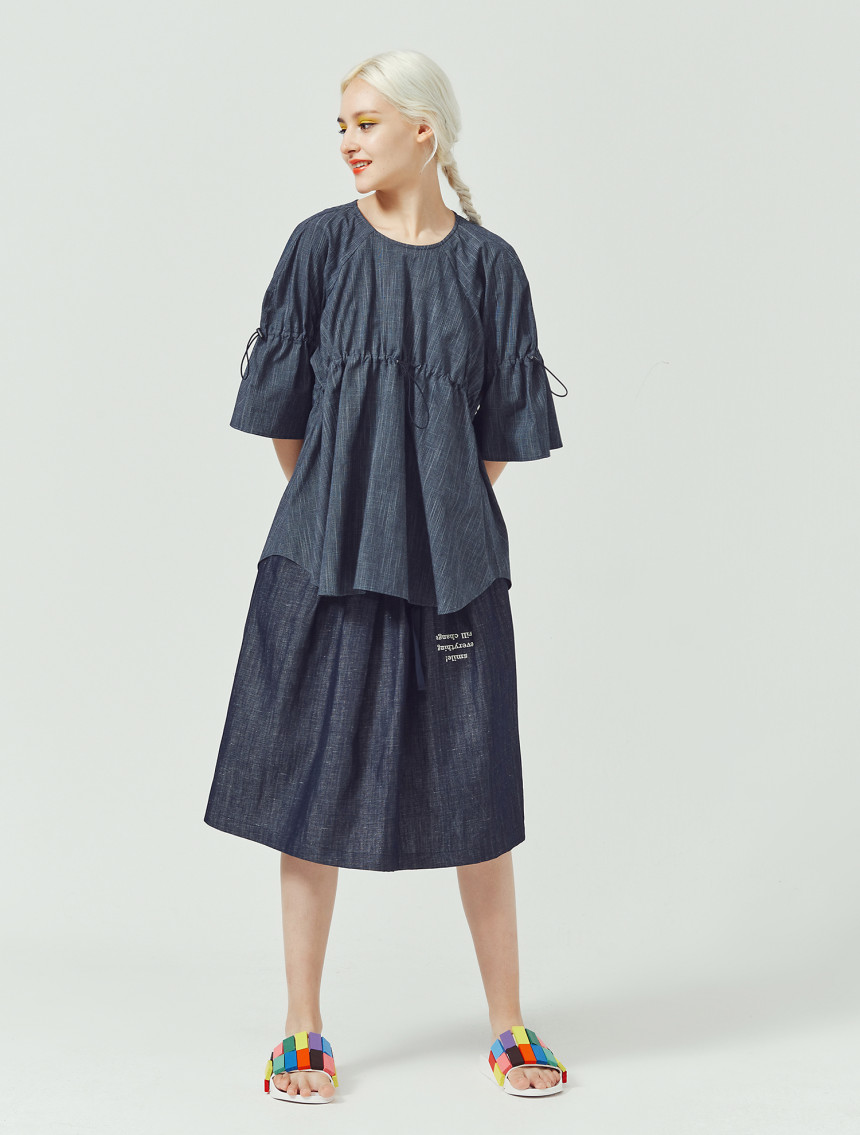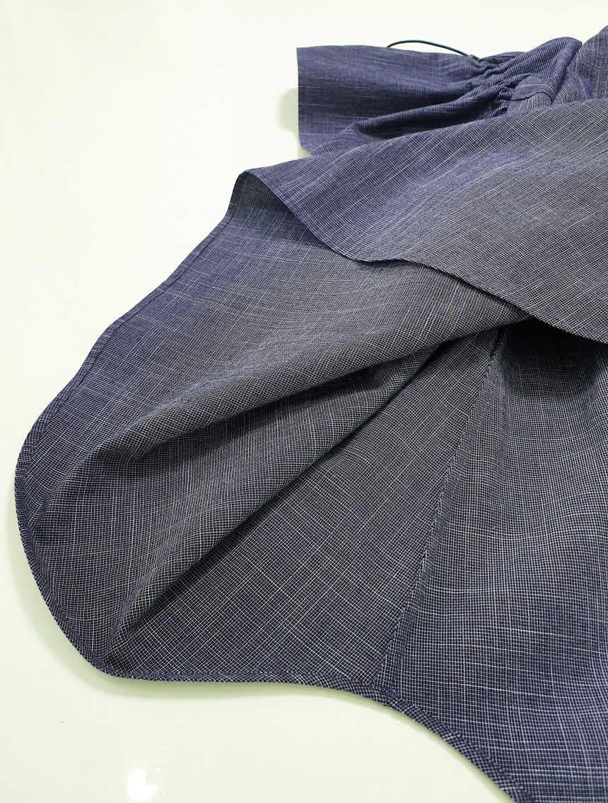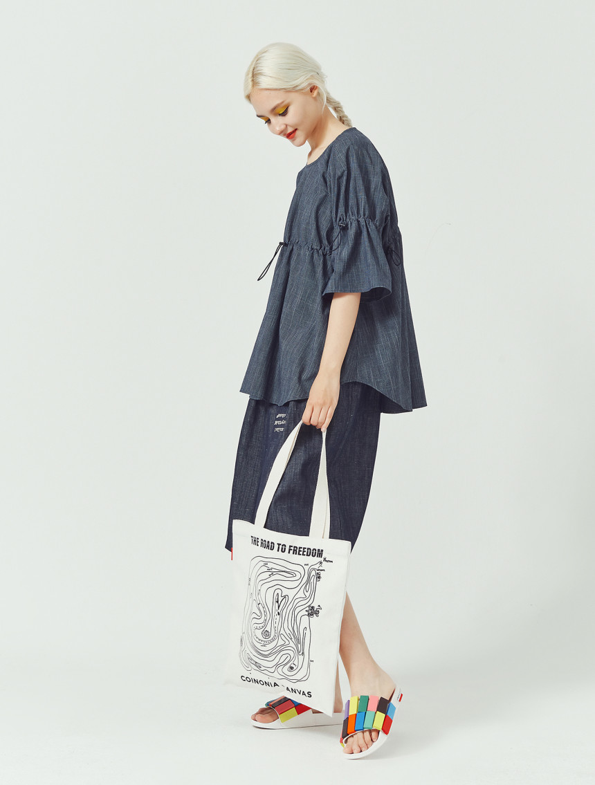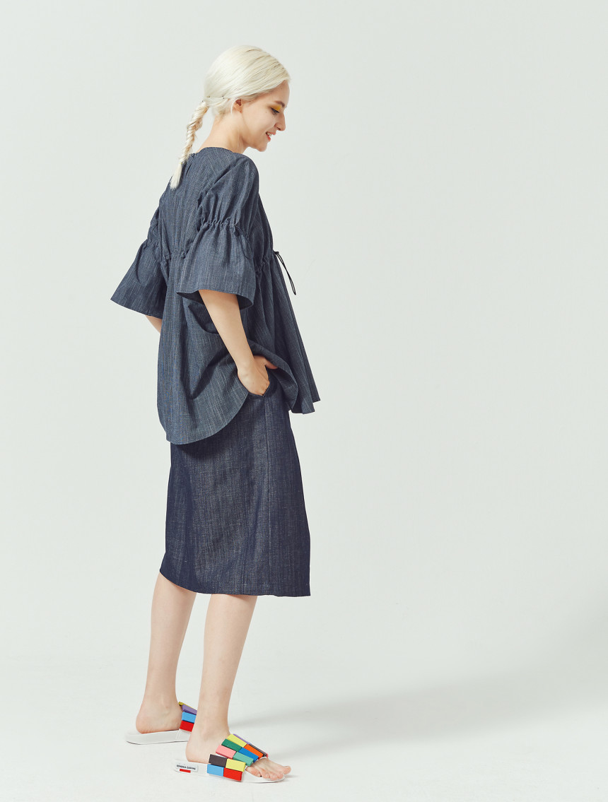 가볍고 쾌적한 슬럽 인디고 소재로 제작된 [Slub indigo string top]입니다. 착용자의 체형과 스타일에 따라 스톱퍼로 주름의 양을 조절해서 자신만의 볼륨감을 만들 수 있는 특성이 있습니다. 특히, 엘라스틱 스트링을 사용하여서 주름을 많이 주어도 답답하지 않는 활동량과 편안한 착용감을 보장합니다. 제품은 출고 시 디자이너에 의해 적당량의 주름이 잡혀진 상태에서 출고가 됩니다.