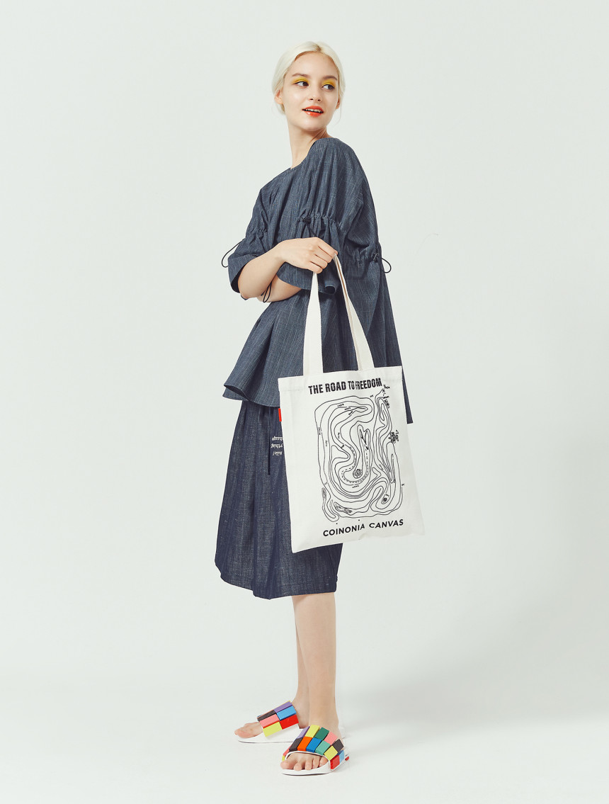 " Maze canvas bag & Smile denim skirt-Linen&cotton"