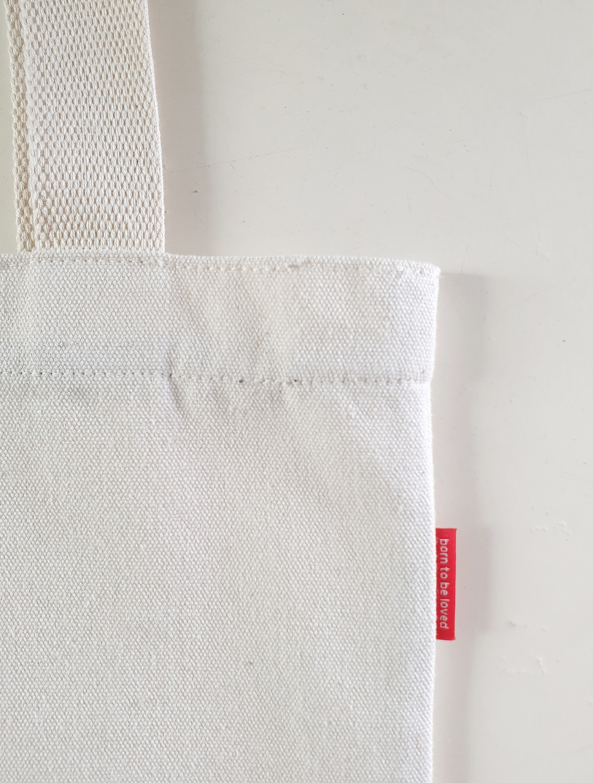 가방 옆에 부착된 COINONIA CANVAS의 레드 탭에는 "born to be loved", "사랑받기 위해 태어났어"라는 작고 사랑스러운 문구가 적혀져 있습니다.