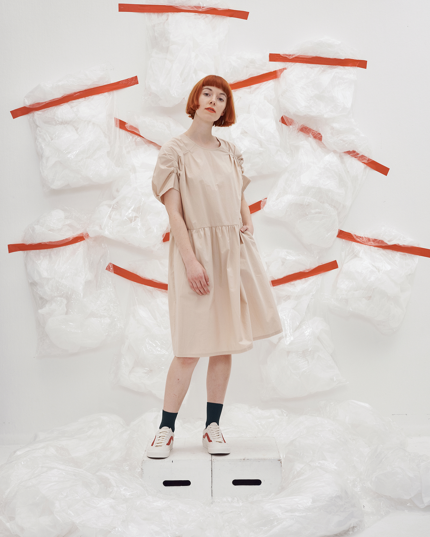 사이드라인에는 숨어있는 포켓이 있어서 드레스 라인에는 영향을 주지 않지만 손을 편안히 둘 수 있는 실용적인 드레스입니다.