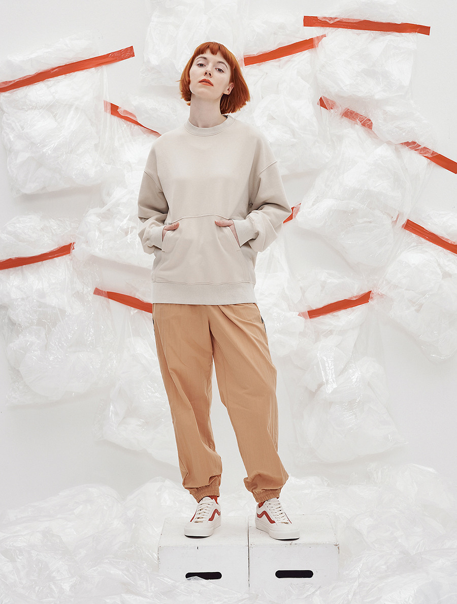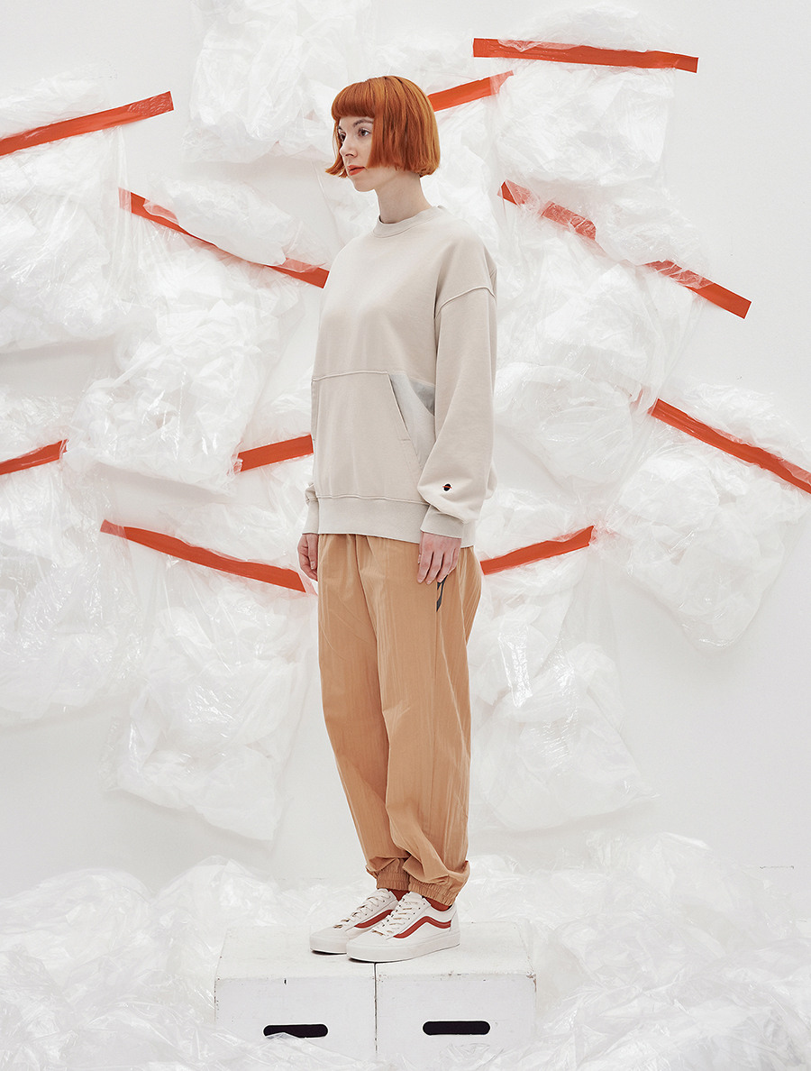 겉면의 감도 높은 사쿠라 컬러의 조합과 면들의 컷팅 패턴, 점퍼 안쪽의 선을 컬러감은 코이노니아 캔버스만의 미술적인 감성이 돋보이는 나만의 오리지널 감성 트랙 팬츠입니다.
