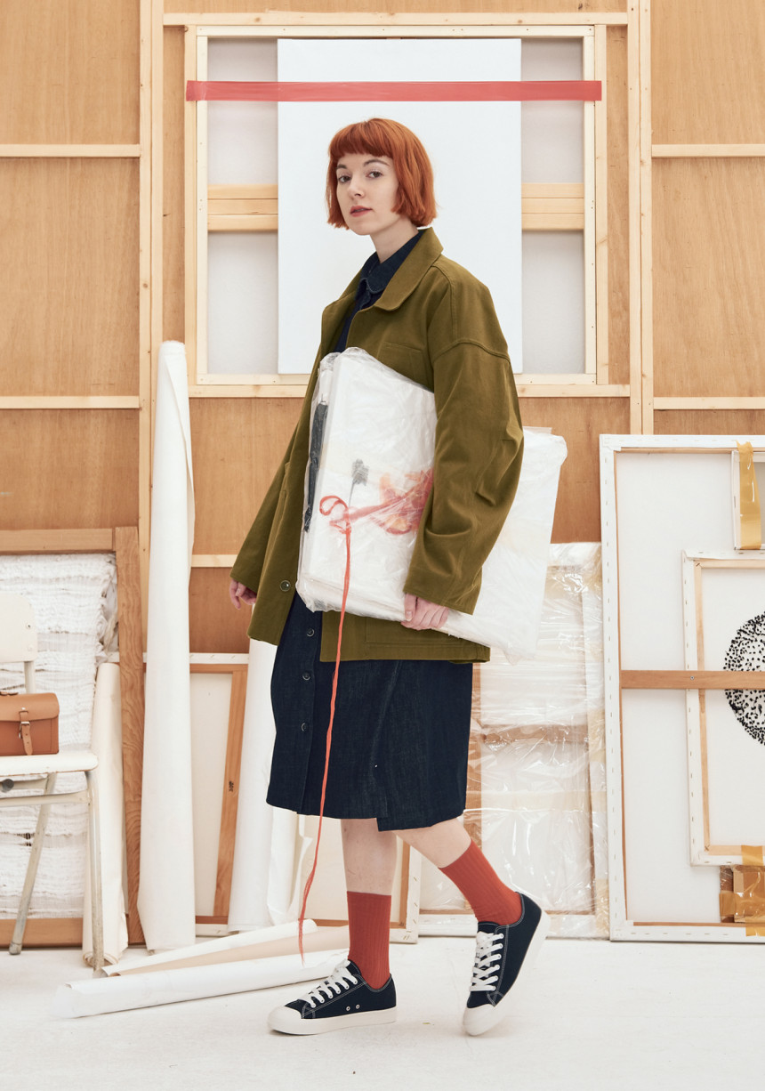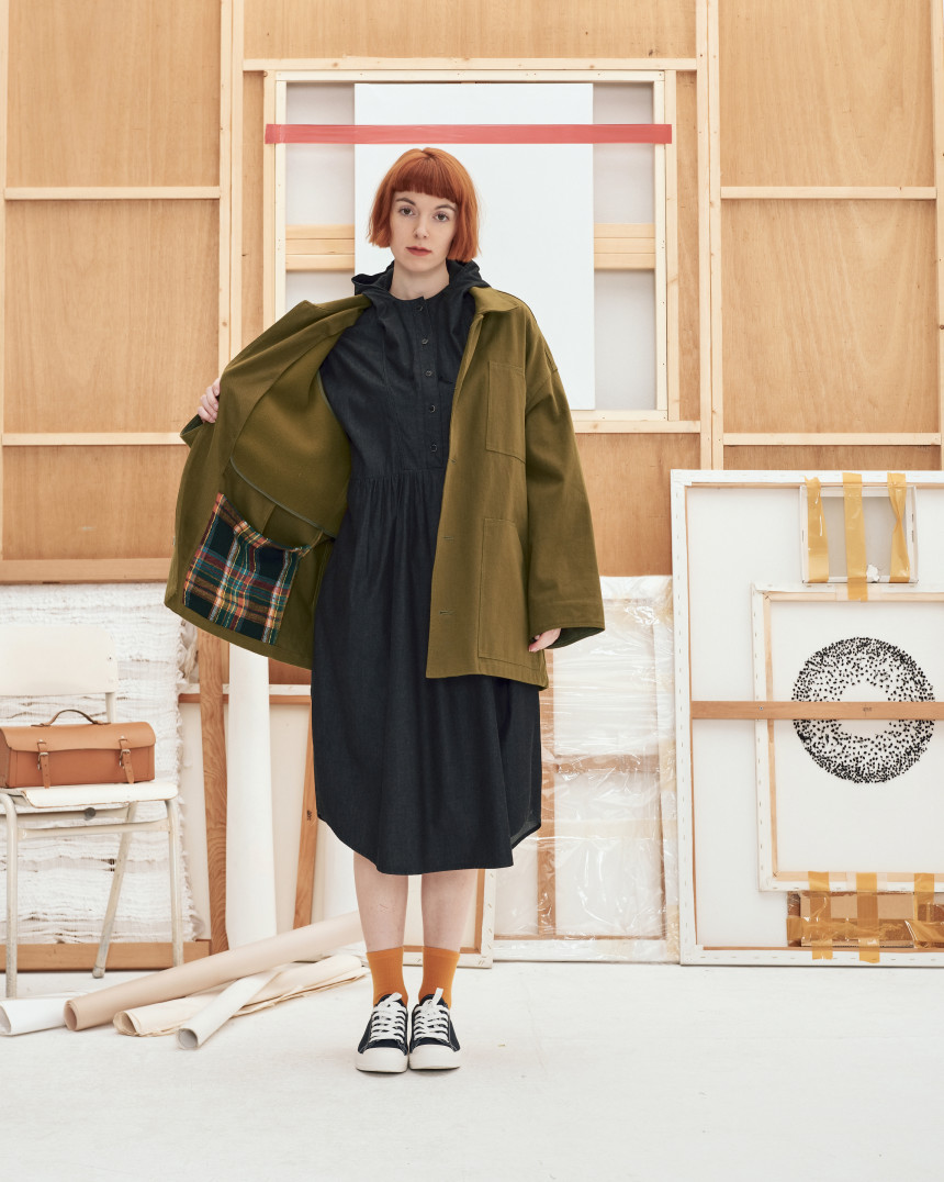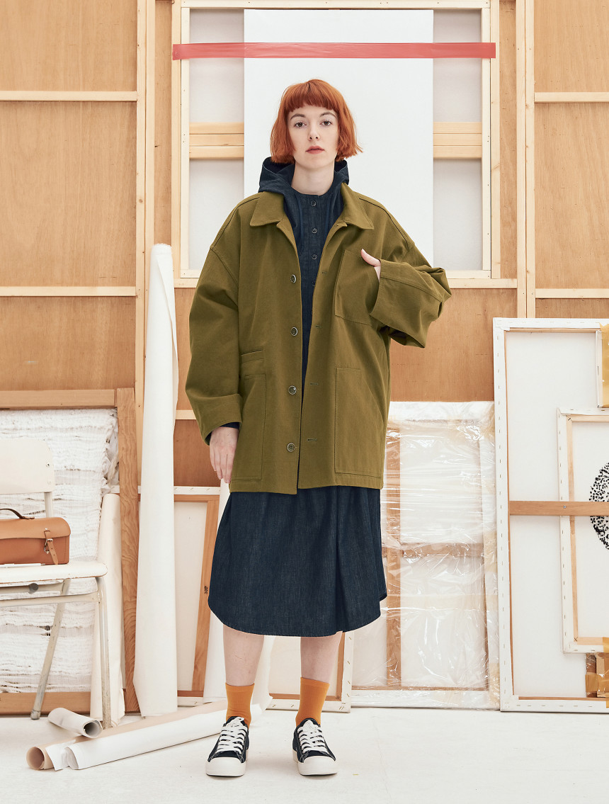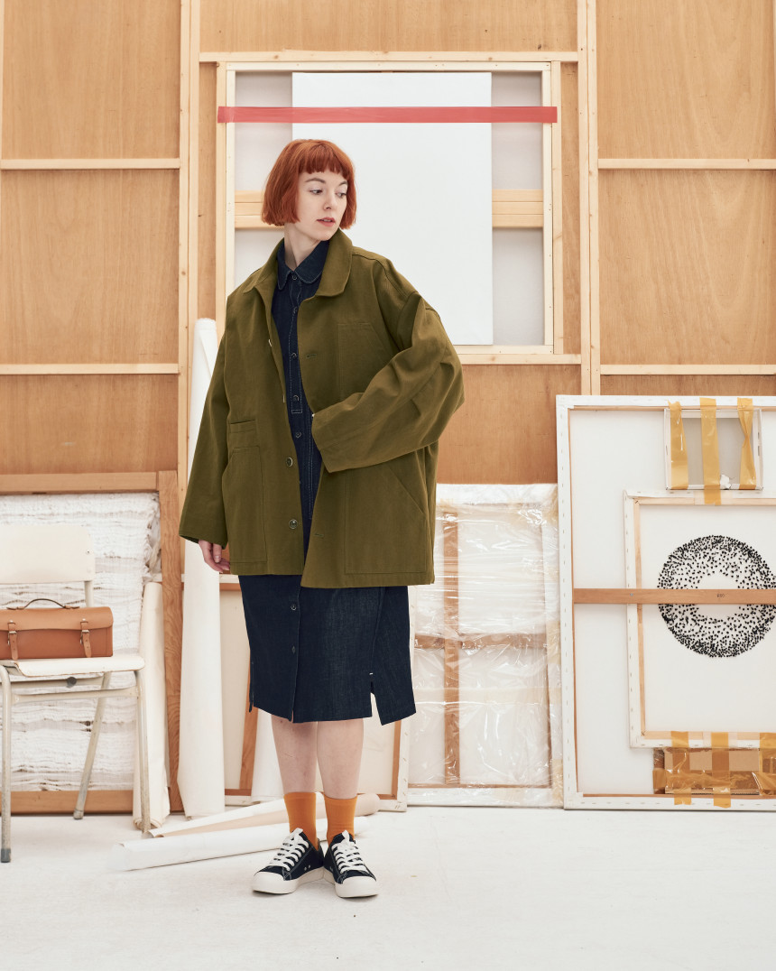 코이노니아 캔버스의 [Amekaji work dress-Indio blue]와 같이 착용한 모습