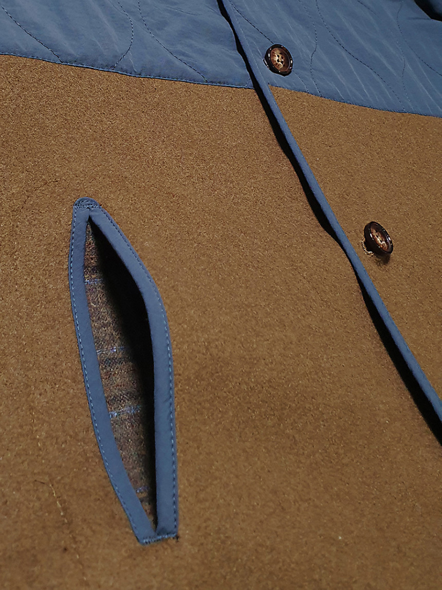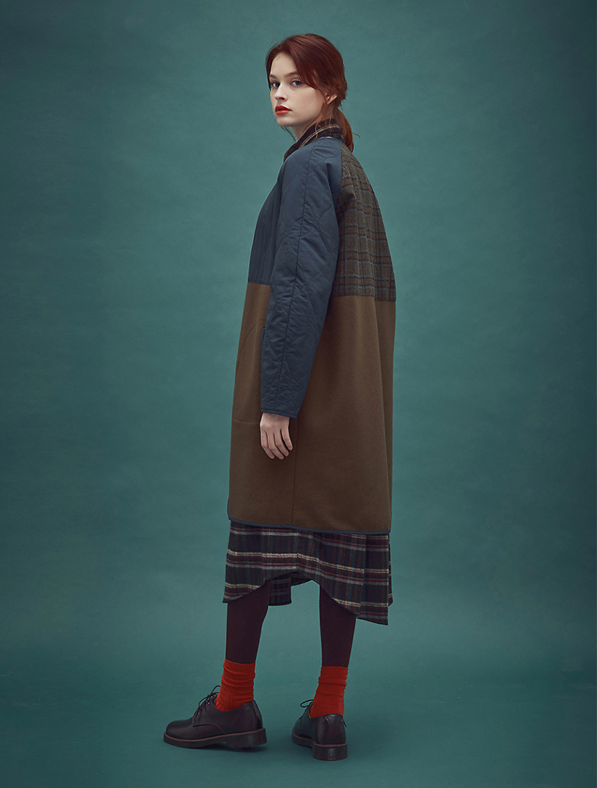울과 레이온의 혼방으로 원단과 비건 패딩을 믹스해서 제작한 [CC-1 앨리스 울 라이너 코트] 네이비 머스터드 컬러입니다.[CC-1 앨리스 싱글트랜치 코트]와 단짝을 이루어서 겨울과 봄,가을 3개월 크로스 코디 제품으로 개발 되었습니다.바디 전체가 울/레이온 소재로 따뜻하면서도 부드럽게 구성되어있고 뒤 등쪽은 체크원단으로 덧대어져 따뜻하면서 독특한 디자인의 아름다움을 더해 줍니다.