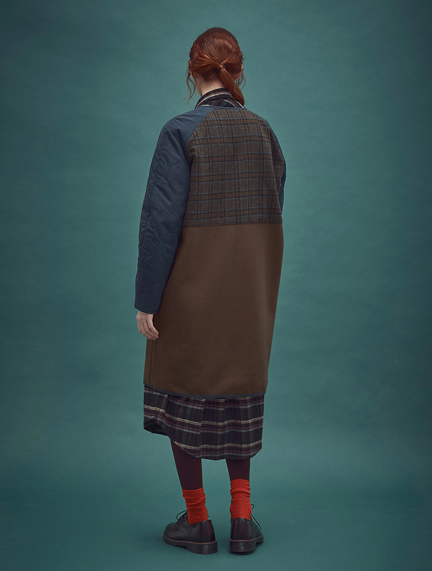 뒷 등쪽은 따뜻한 매니쉬한 타탄체크로 덧대어져 보온력을 높여주고 독특한 디자인을 만들어 줍니다.