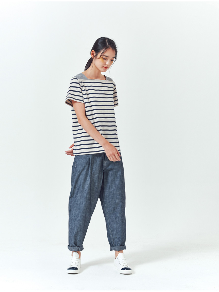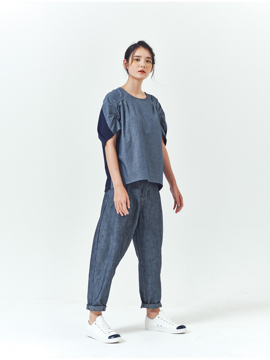 일반 데님의 트윌조직보다 얇은 실로 짜여진 얇고 가벼우면서 천연섬유의 특성상 통풍성도 우수합니다.