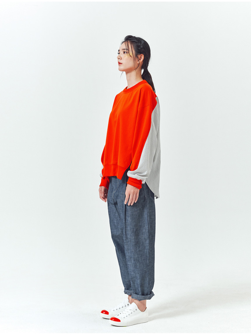 필요한 부분부분 바텍으로 튼튼하게 마무리 되어있고 일반 여성복 봉제 방식과 데님봉제방식을 같이 사용하여서 가볍고 인체에 딱딱한 느낌을 주지 않습니다.