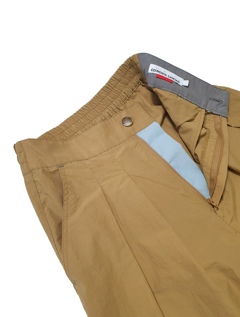미술적인 감각이 돋보이는 안쪽 컬러 매치 허리 뒤쪽에 엘라스틱 밴드를 사용하여 착용감을 높인 디자인