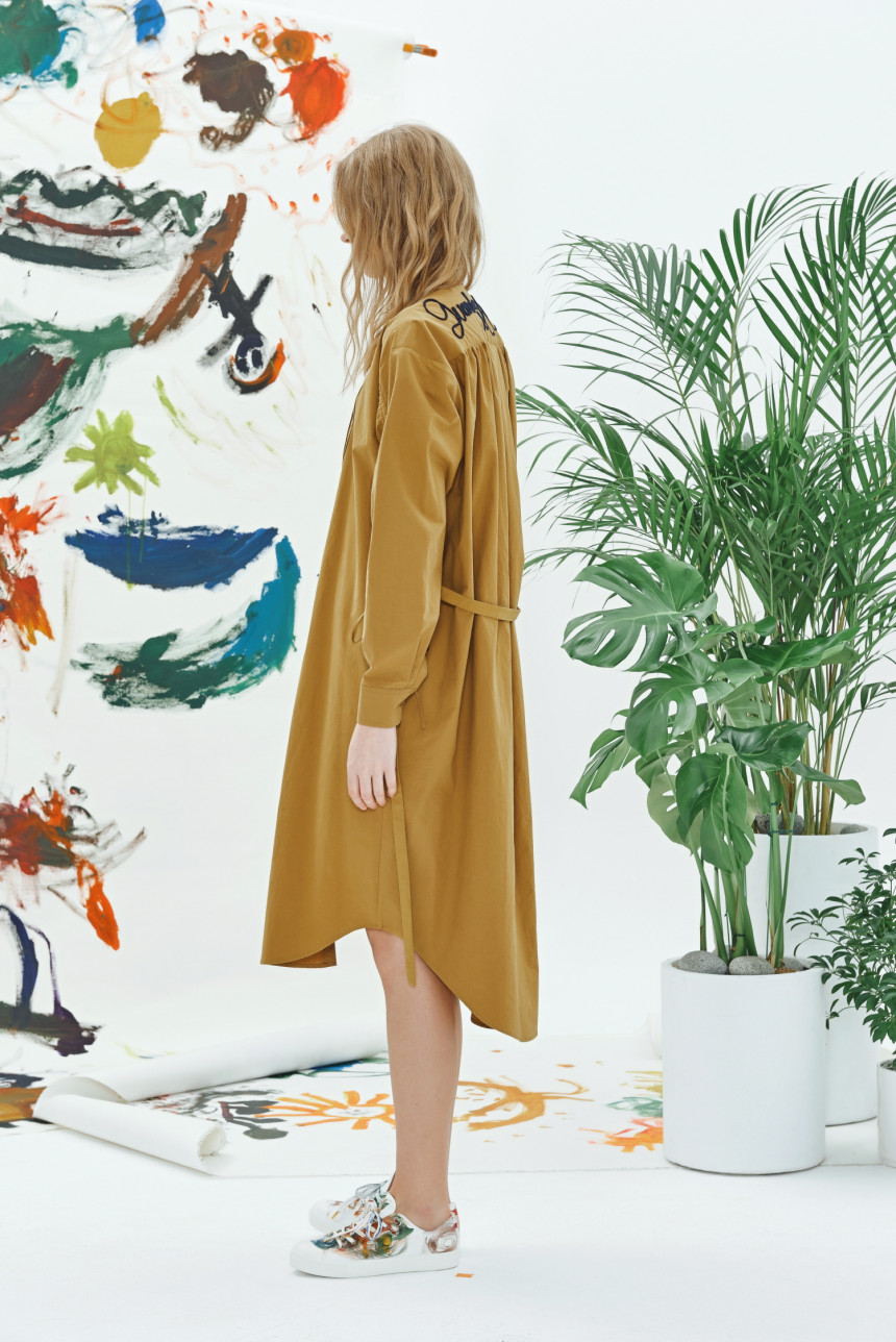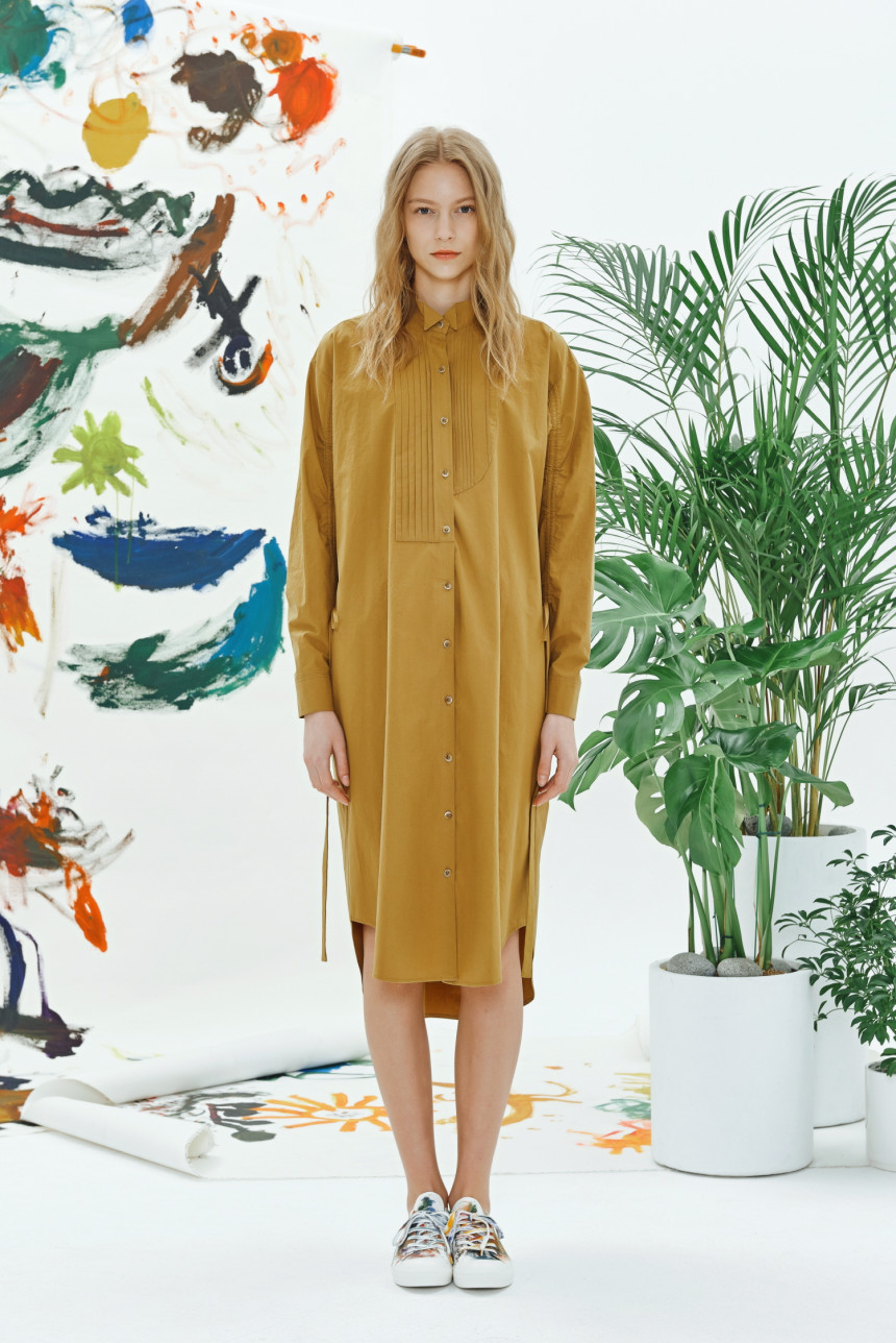 Irregular pin-tuck shirt dress - mustard