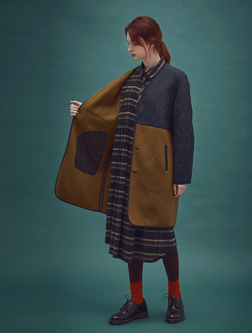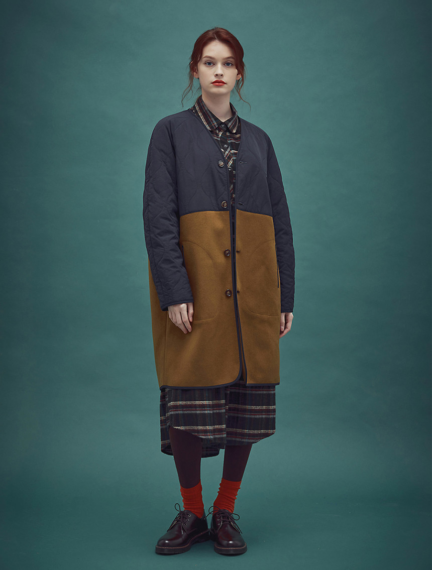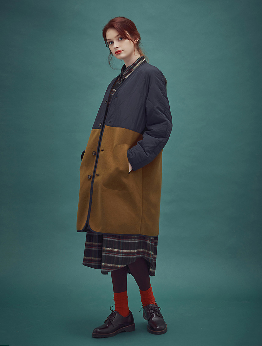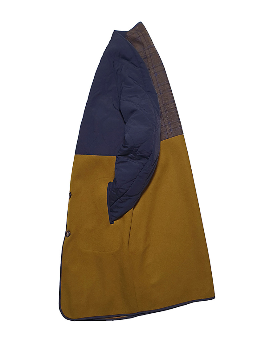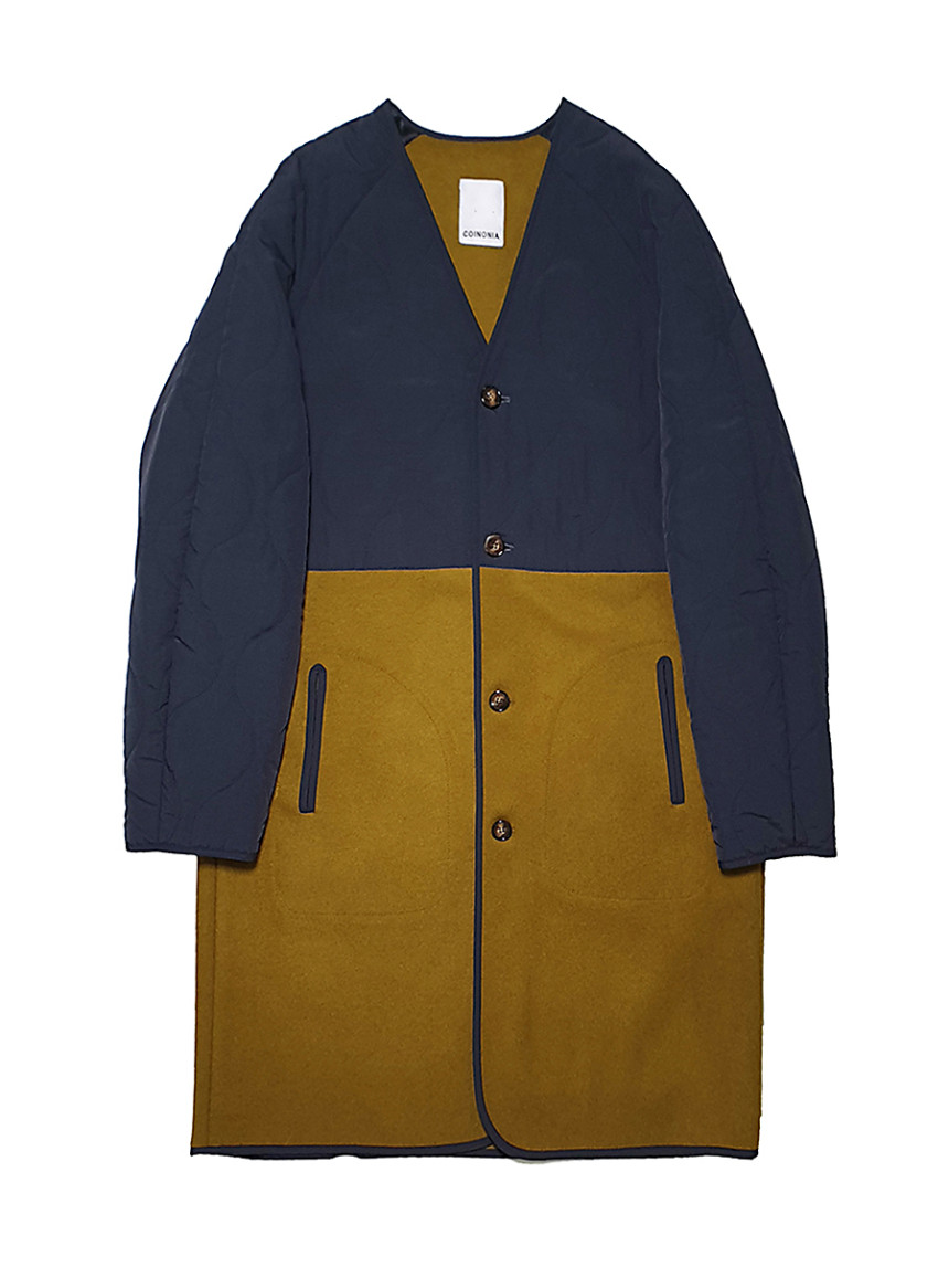 CC-1 Alice wool liner coat-Navy mustard