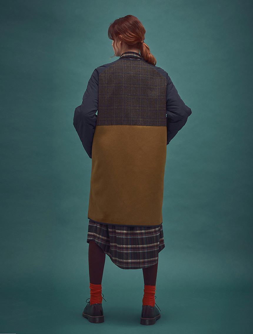 뒷 등쪽은 따뜻한 매니쉬한 타탄체크로 덧대어져 보온력을 높여주고 독특한 디자인을 만들어 줍니다.