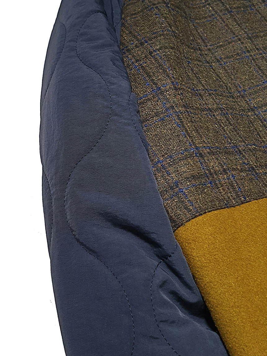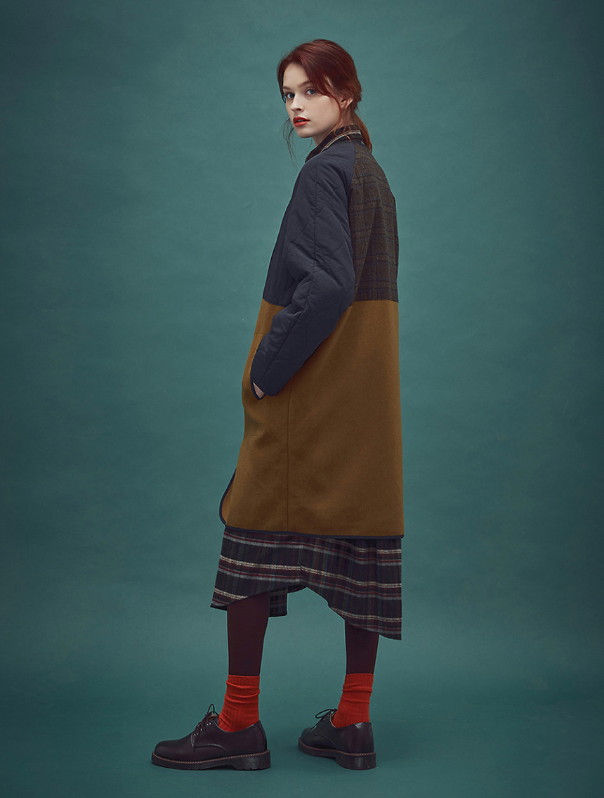 울과 레이온의 혼방으로 원단과 비건 패딩을 믹스해서 제작한 [CC-1 앨리스 울 라이너 코트] 네이비 머스터드 컬러입니다.[CC-1 앨리스 싱글트랜치 코트]와 단짝을 이루어서 겨울과 봄,가을 3개월 크로스 코디 제품으로 개발 되었습니다.바디 전체가 울/레이온 소재로 따뜻하면서도 부드럽게 구성되어있고 뒤 등쪽은 체크원단으로 덧대어져 따뜻하면서 독특한 디자인의 아름다움을 더해 줍니다.
