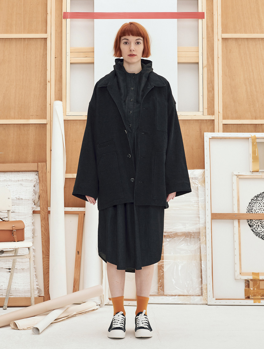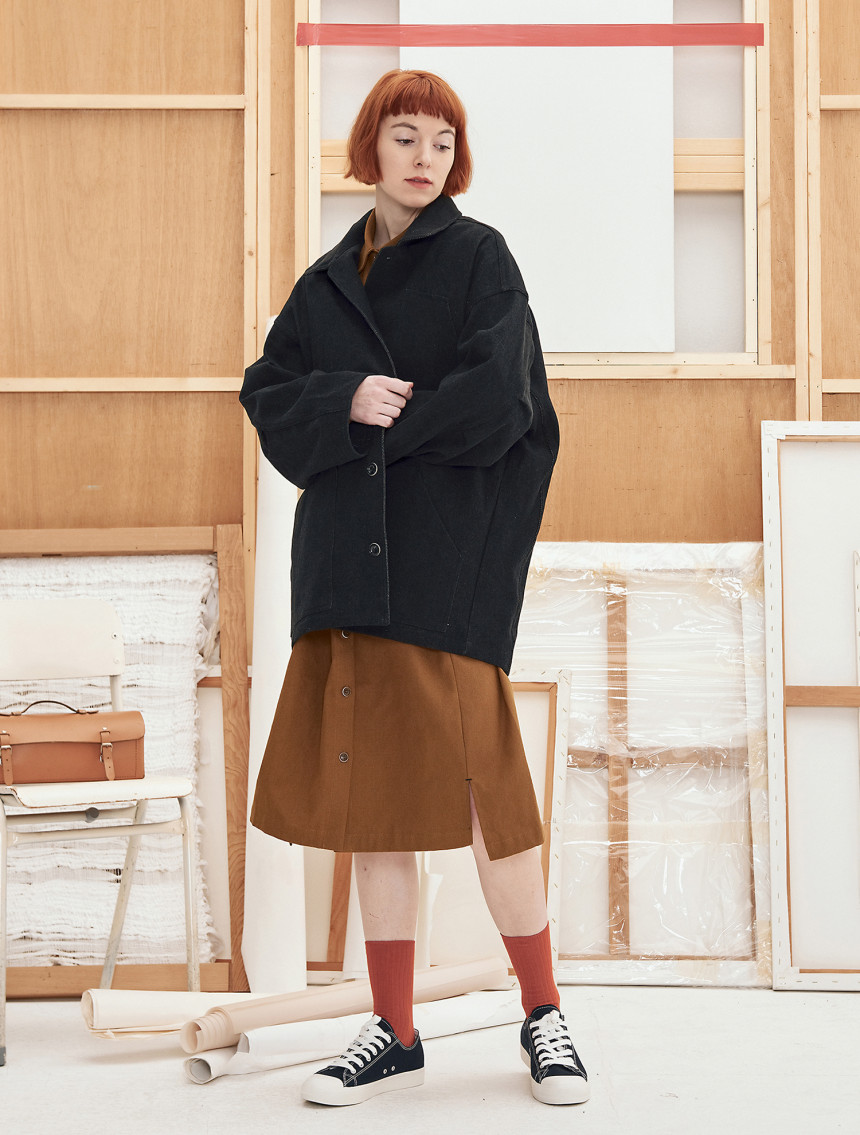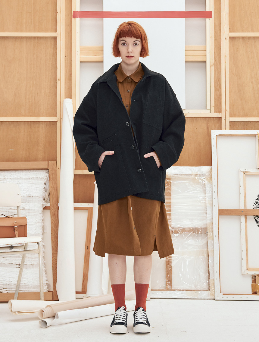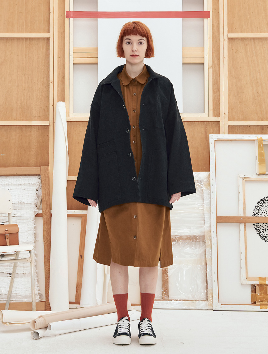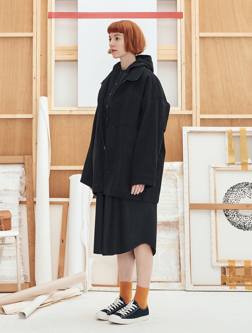코이노니아 캔버스 [Hooded field trip dress]와 레이어드 해서 착용한 모습입니다.