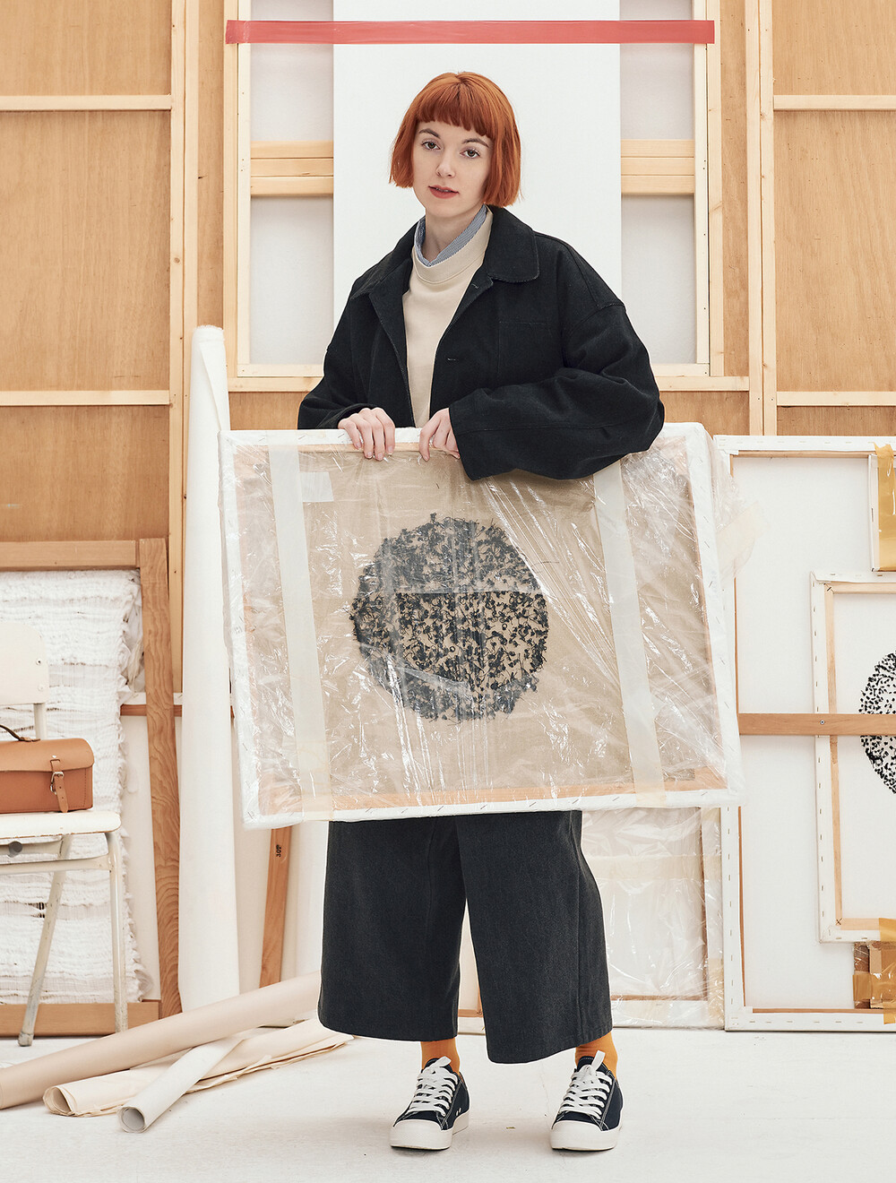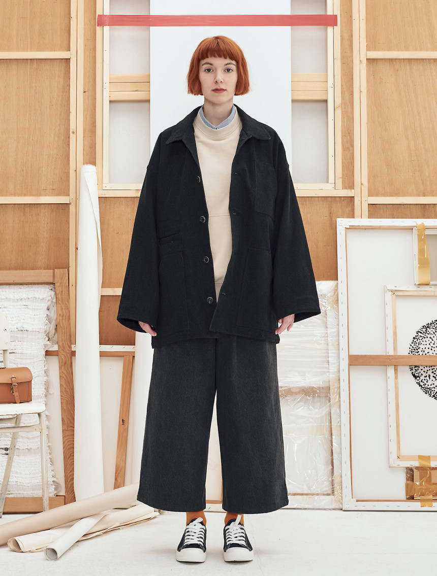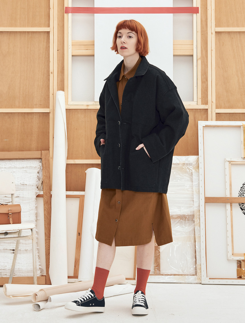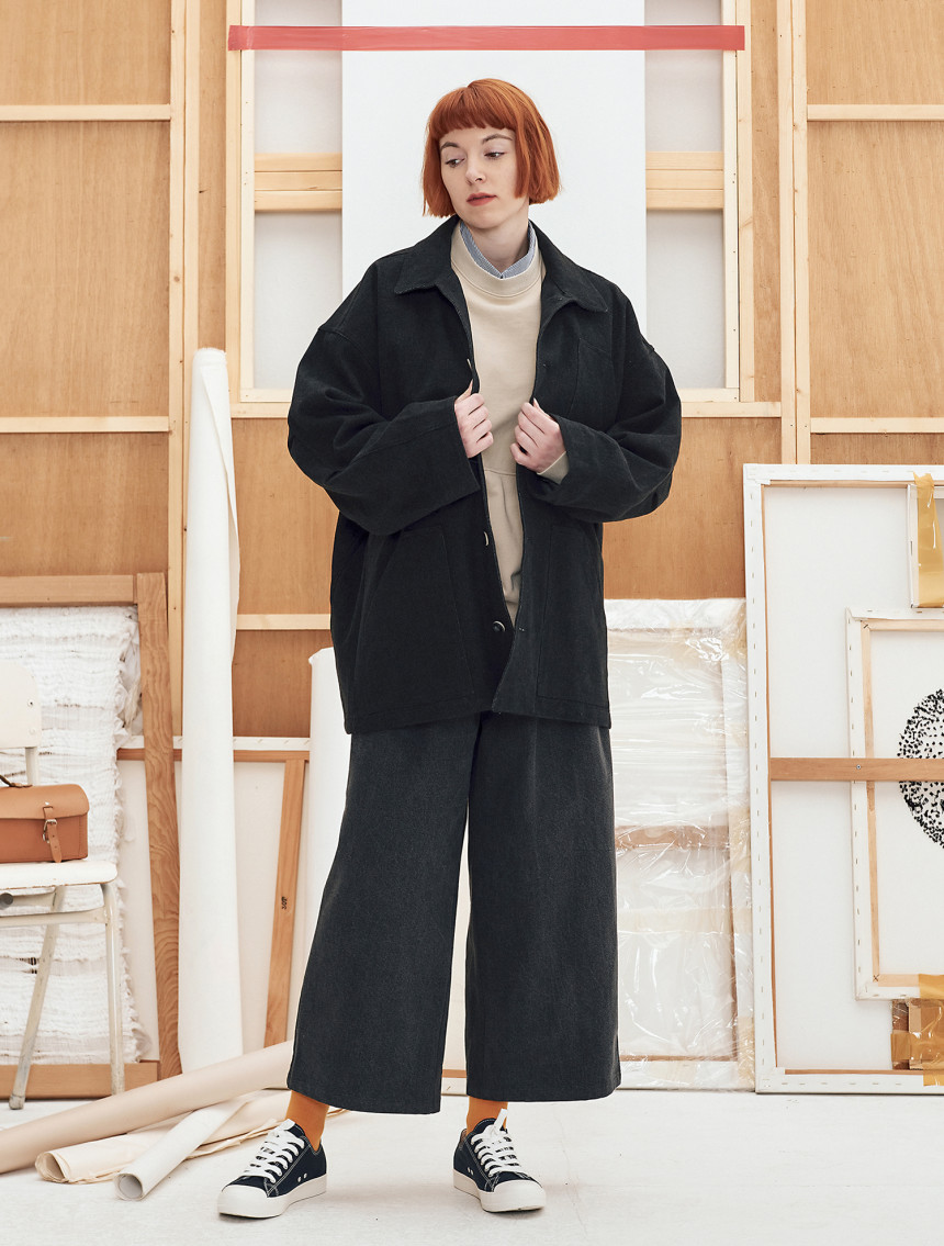 코이노니아 캔버스 [Hooded field trip dress]와 레이어드 해서 착용한 모습입니다.