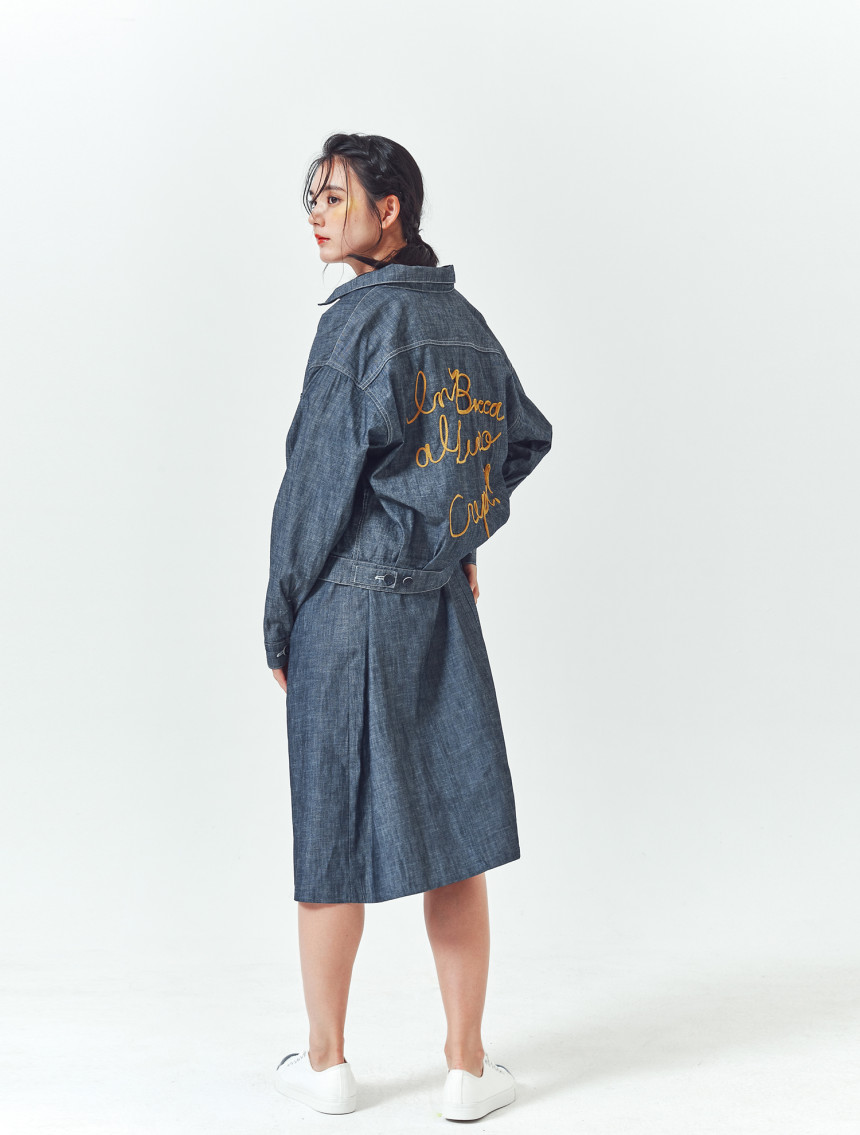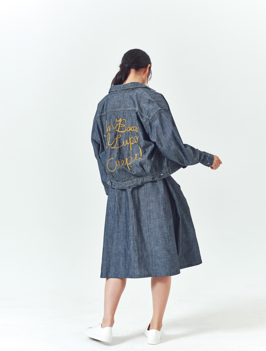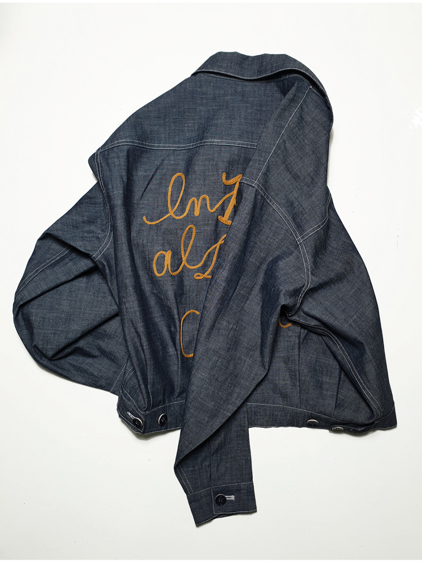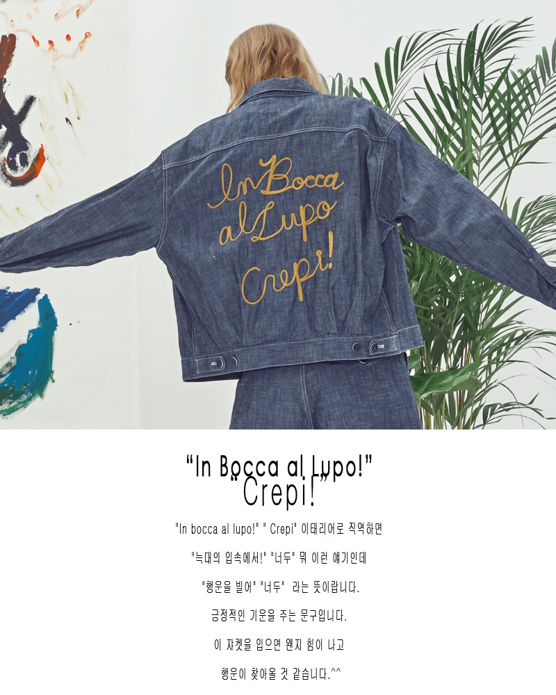 쟈켓의 뒤쪽에는 일상에 활력을 주는 아주 긍정적인 의미의 이태리 문구가 자수 되어있습니다.