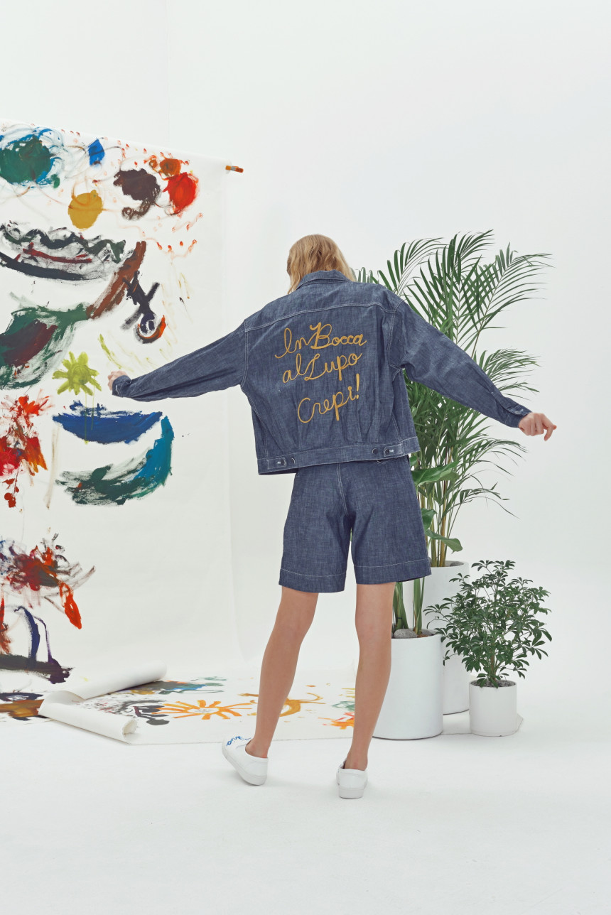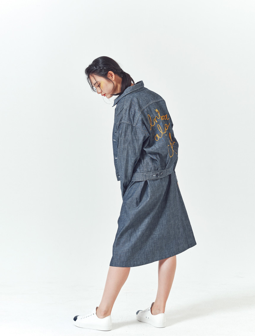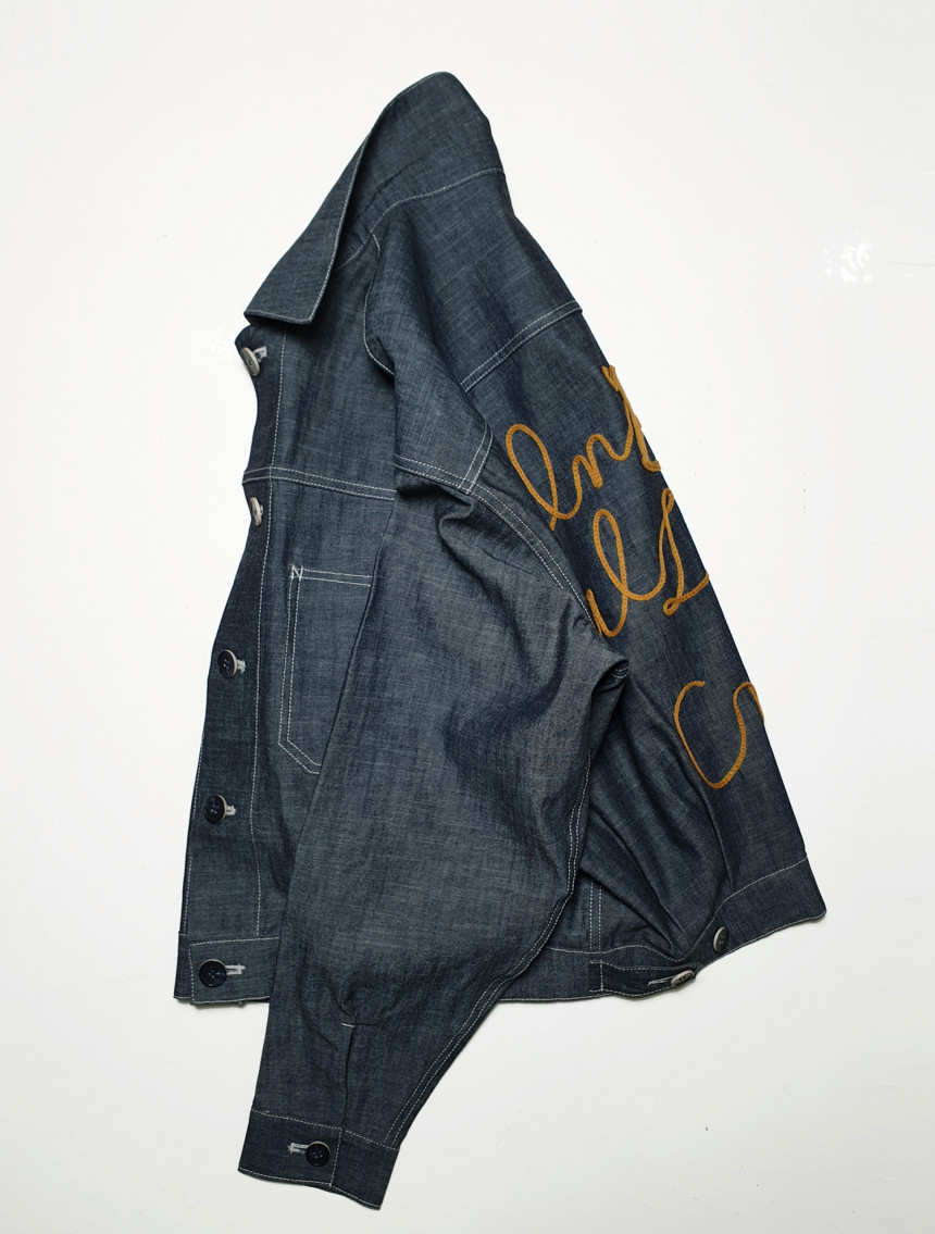 쟈켓의 뒤쪽에는 일상에 활력을 주는 아주 긍정적인 의미의 이태리 문구가 자수 되어있습니다.