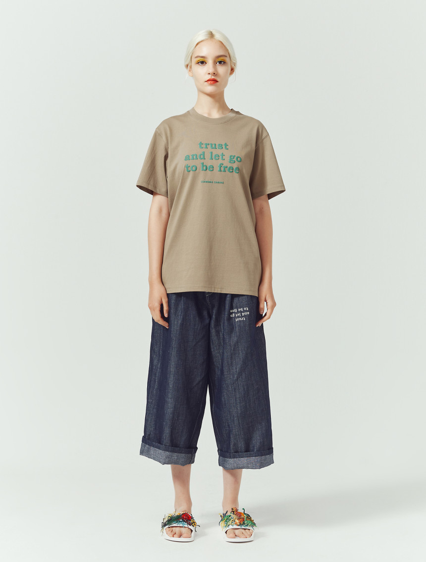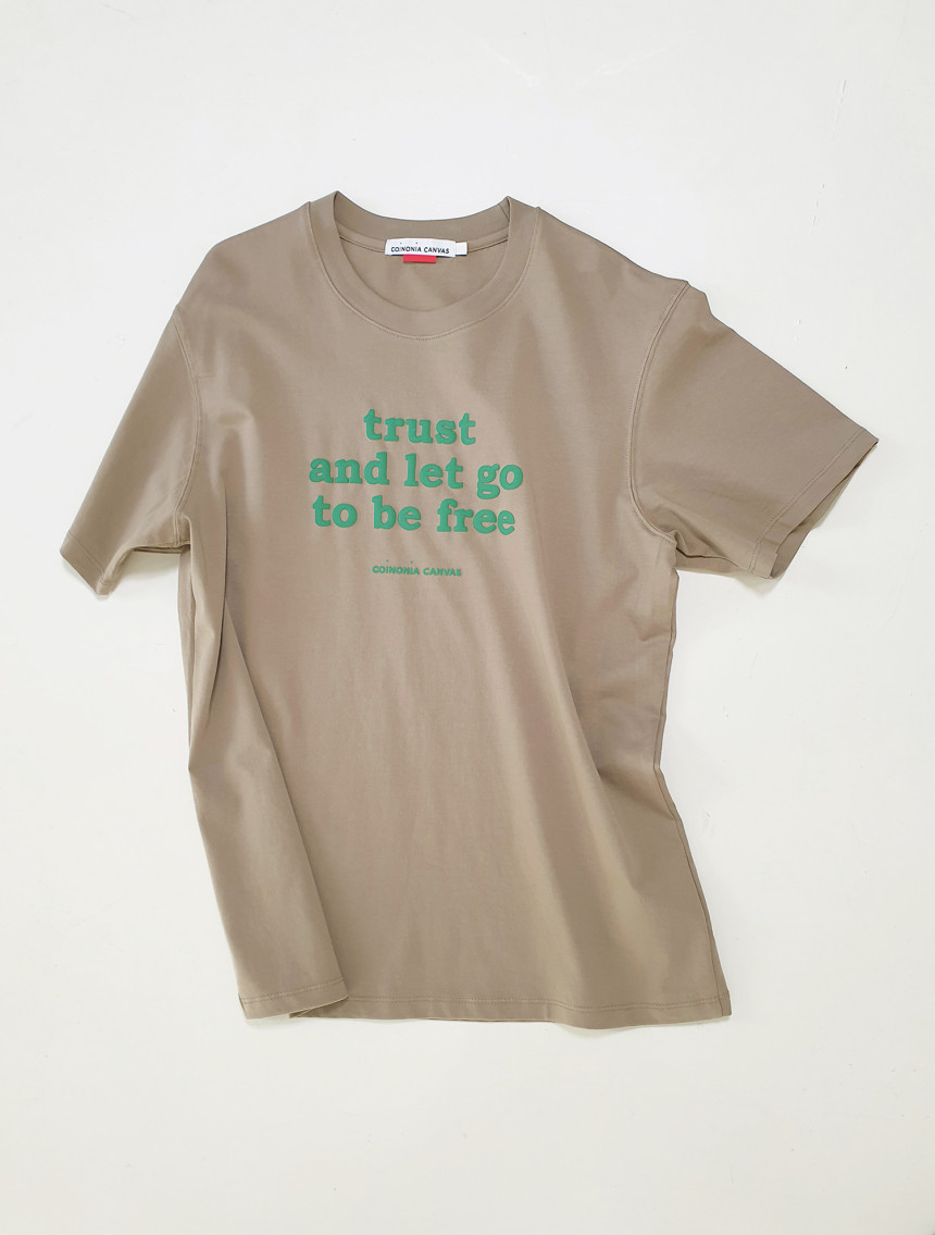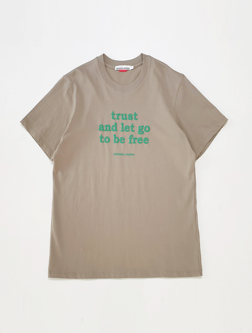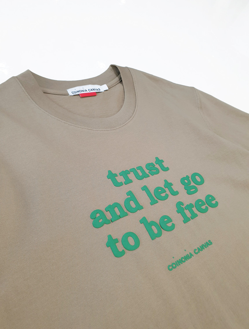 어떤 상황 속에서도 믿고 나아가면 진정한 자유가 찾아온다라는 신뢰의 두께감을 프린트 요철감에서 느낄 수 있 는 티셔츠입니다.