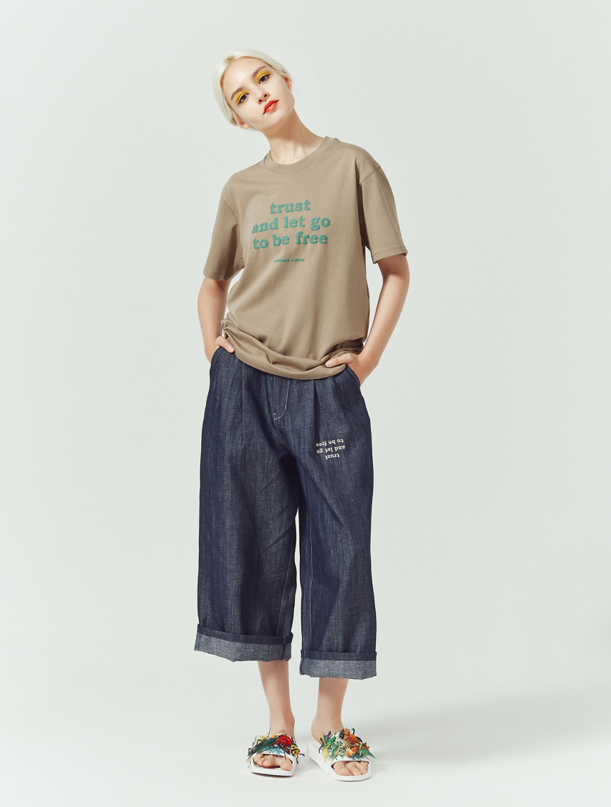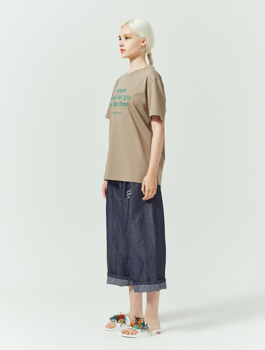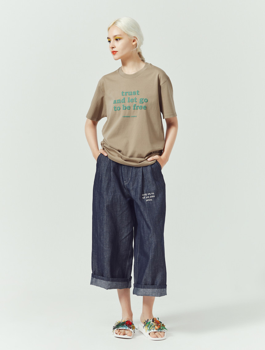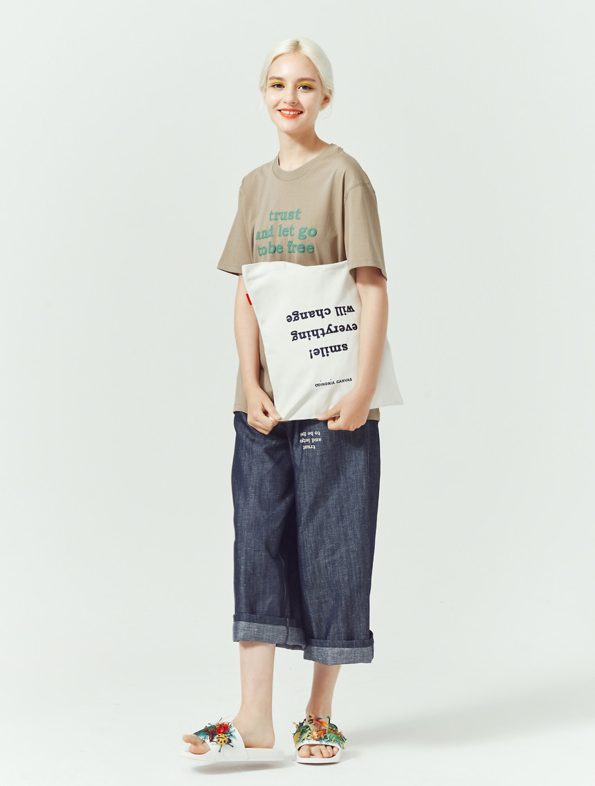 어떤 상황 속에서도 믿고 나아가면 진정한 자유가 찾아온다라는 신뢰의 두께감을 프린트 요철감에서 느낄 수 있 는 티셔츠입니다.
