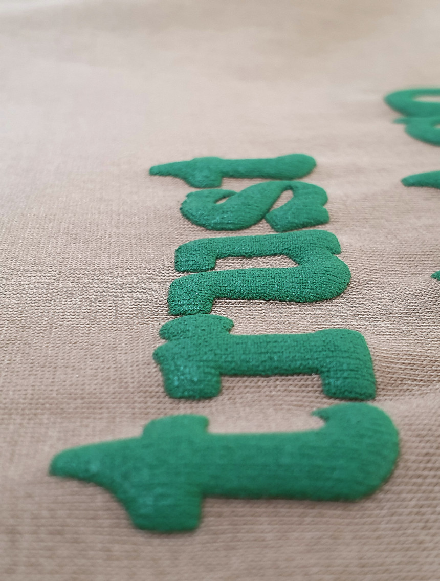요철감 있게 티셔츠에 부착되어 있습니다.