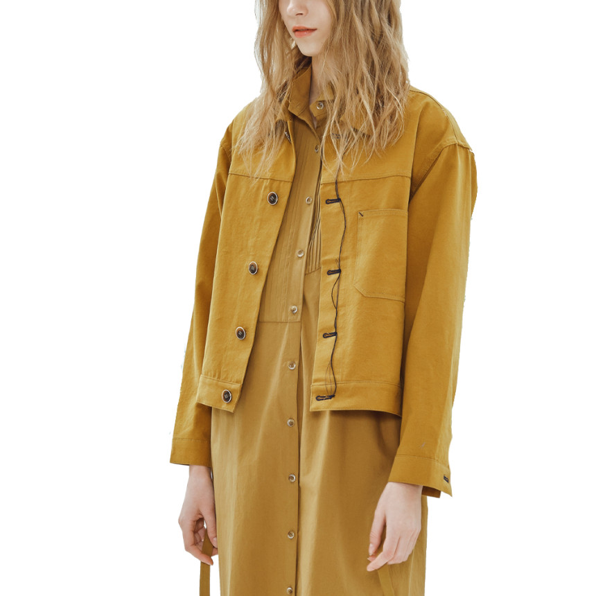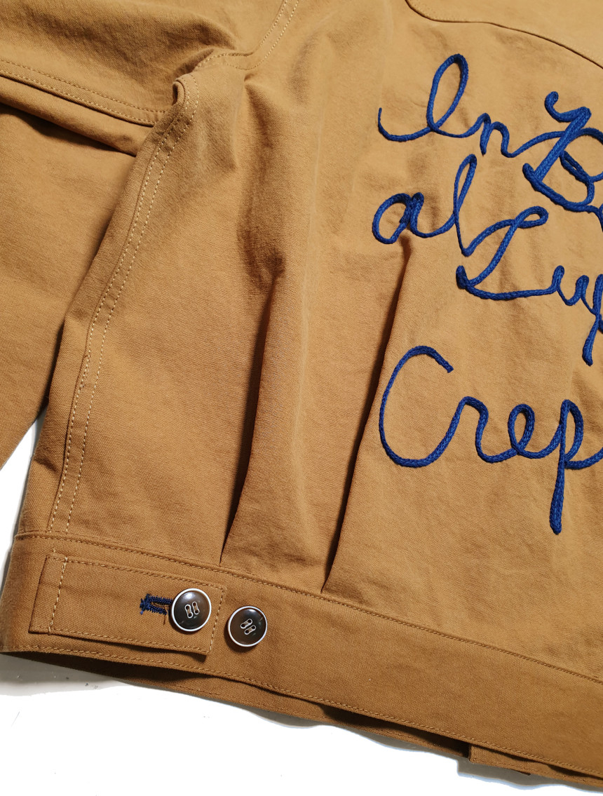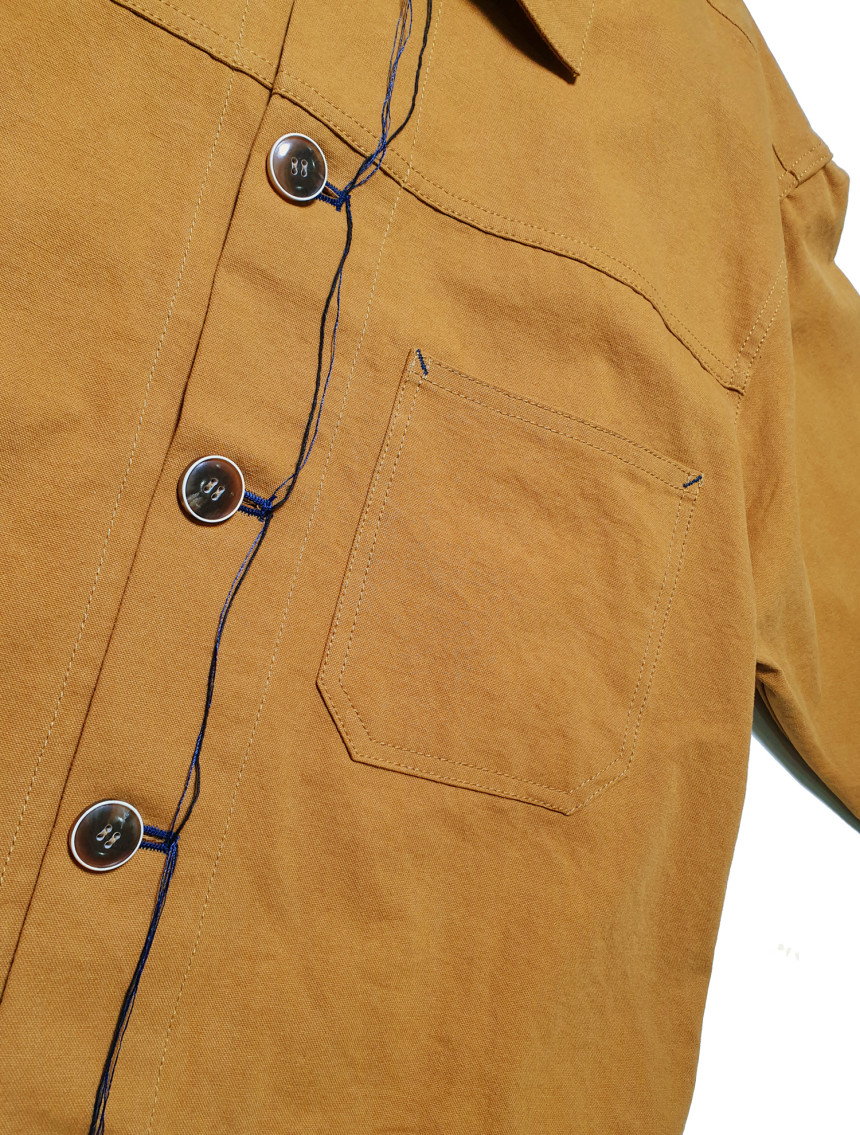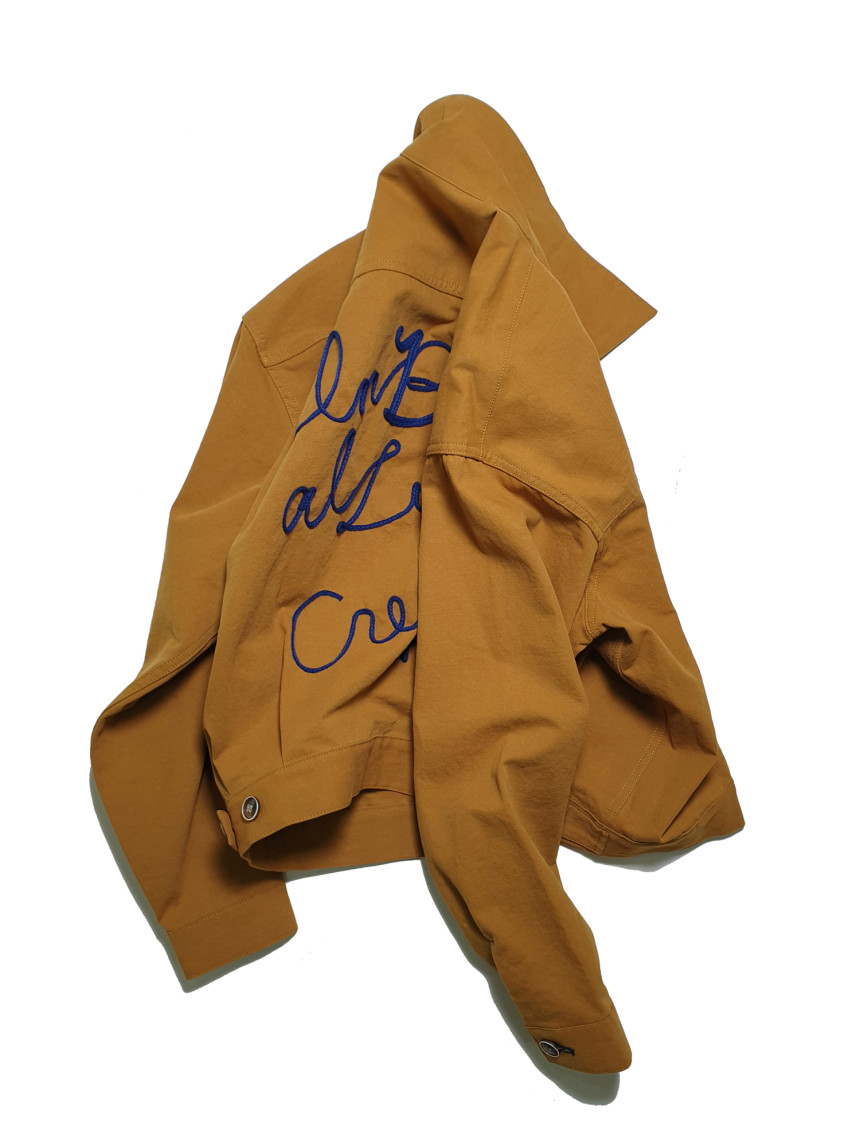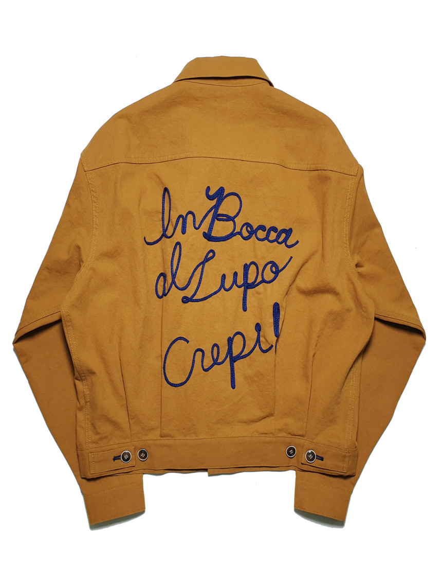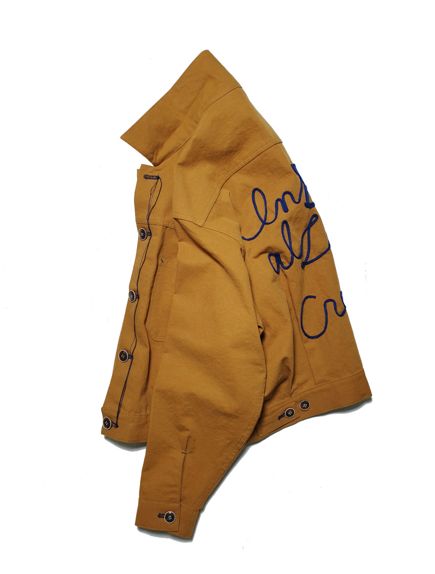 10수 옥스퍼드지로 제작된 [10s Oxford lettered jacket 20ver-Mustard]입니다. 독특한 머스터드 컬러에