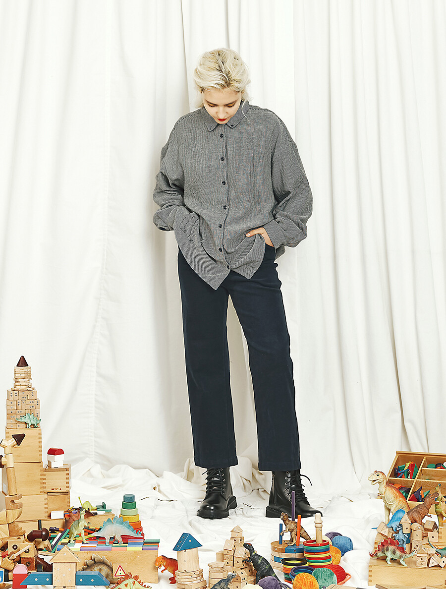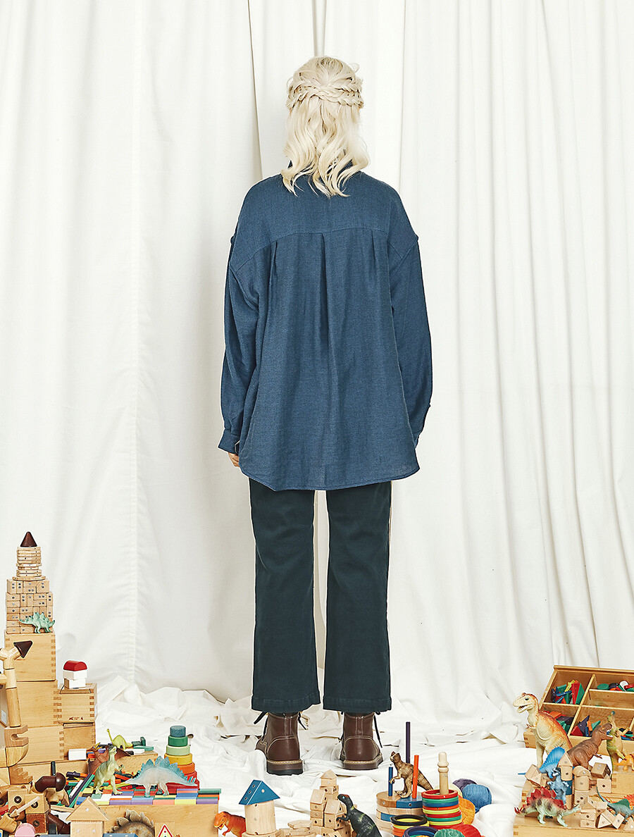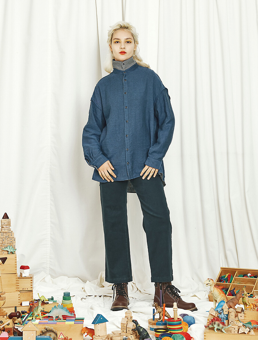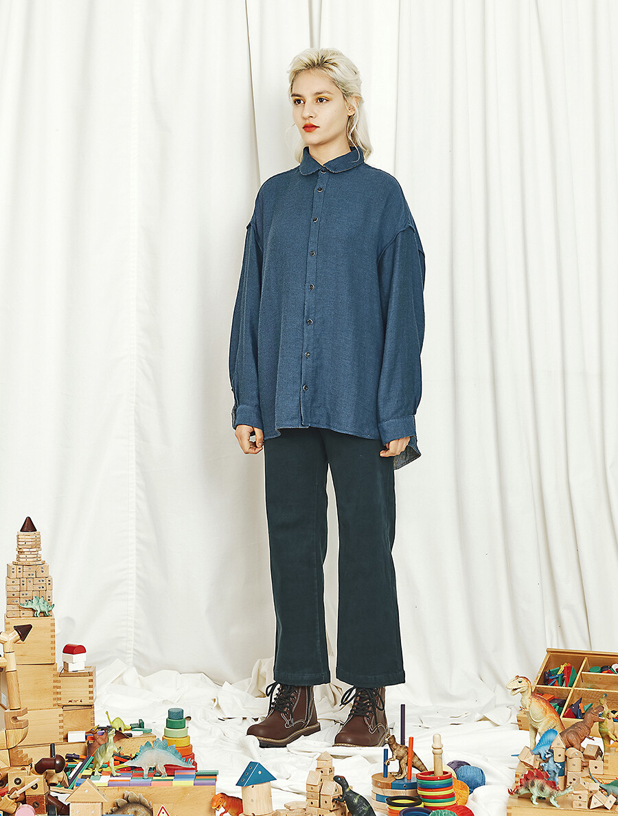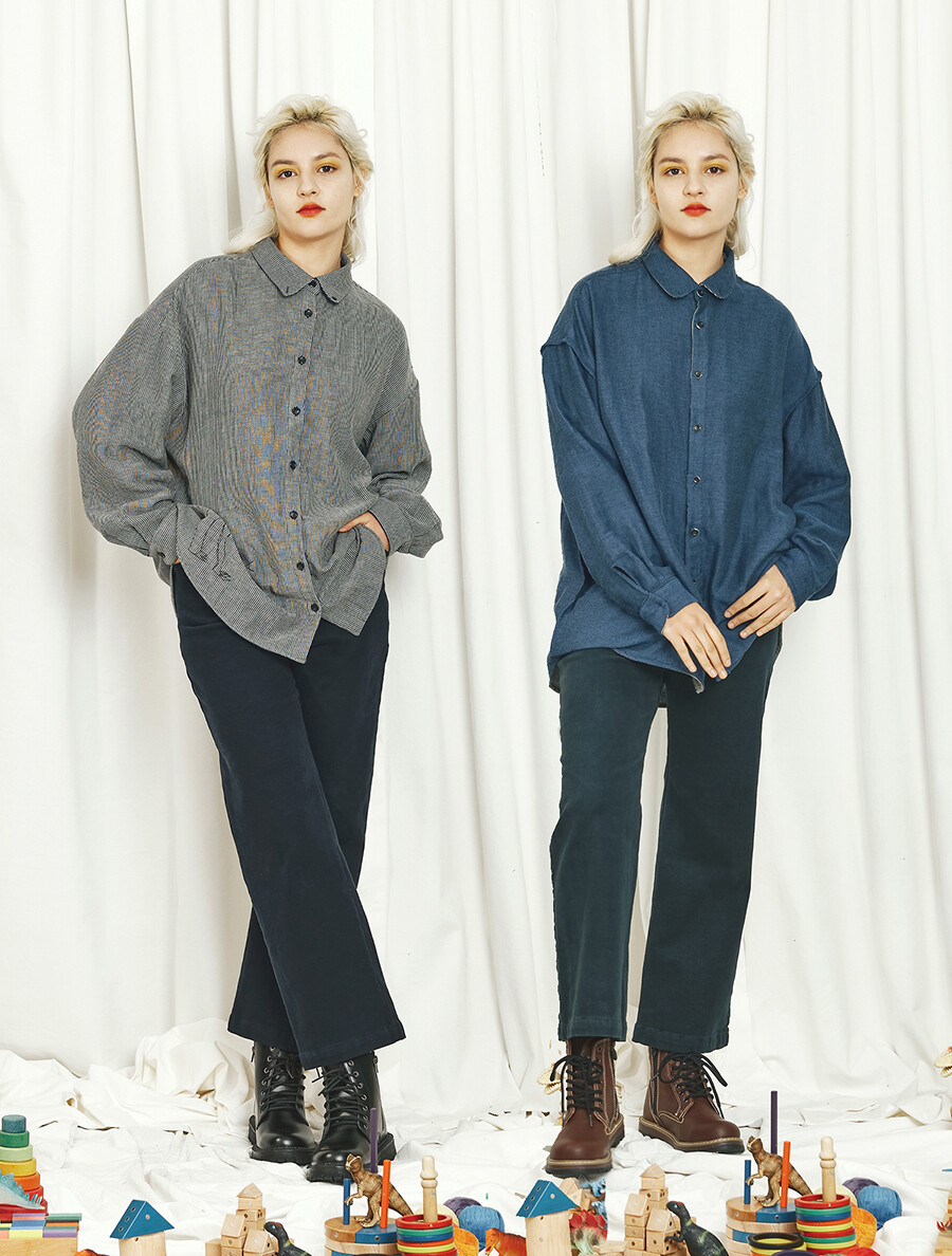 편안한 캐주얼 셔츠 분위기와 드레시한 블라우스 분위기를 모두 갖추고 있으며 카라에는 작은 단추까지 있어서 카라를 세운 후 단추를 채우면 착용자의 목을 부드러우면서도 포근하게 감싸서 보호하는 스카프 역할까지 하는 실용성과 아름다움을 두루 갖춘 남여 공용 유니섹스 제품입니다. 봄,가을,겨울 모두 착용 가능합니다.