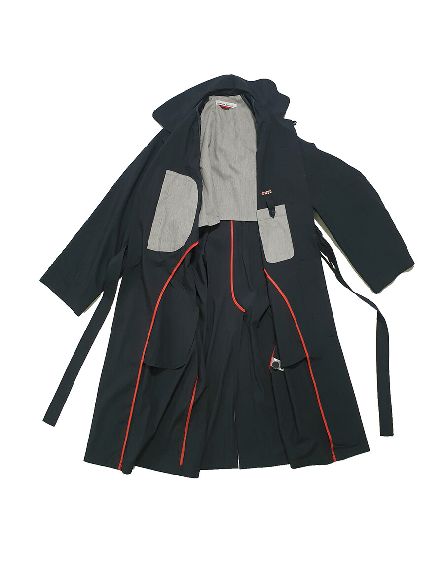 왼쪽 가슴에는 모바일폰을 안전하게 넣을 수 있는 포켓이 있고 trust [믿음]라는 문구가 트랜치의 심장부분에 자수로 탄탄하게 새겨져 있어서 일상에서 나의 마음을 지켜 줍니다.