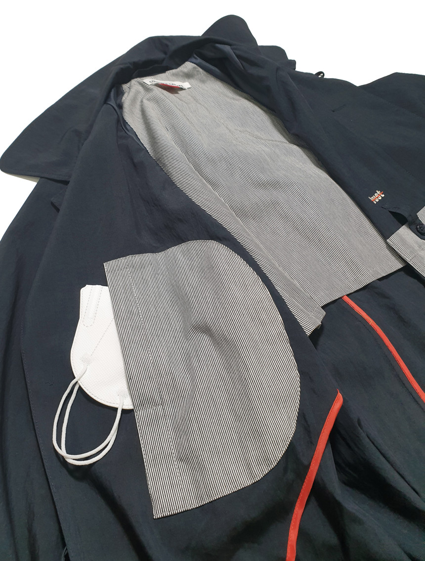 오른쪽 가슴 부분에는 마스크를 수납할 수 있는 라운딩 포켓이 있습니다.