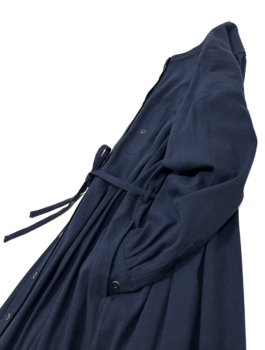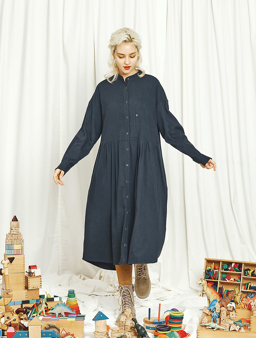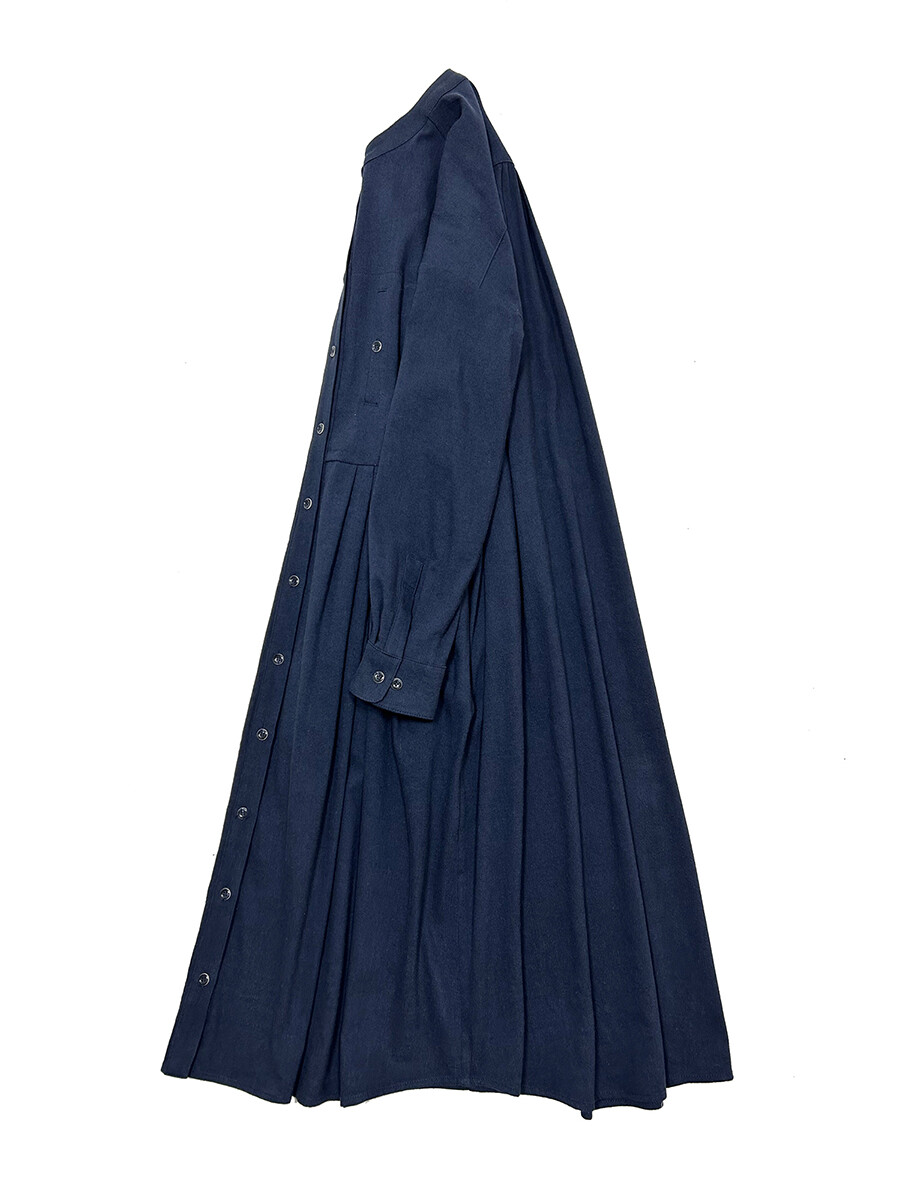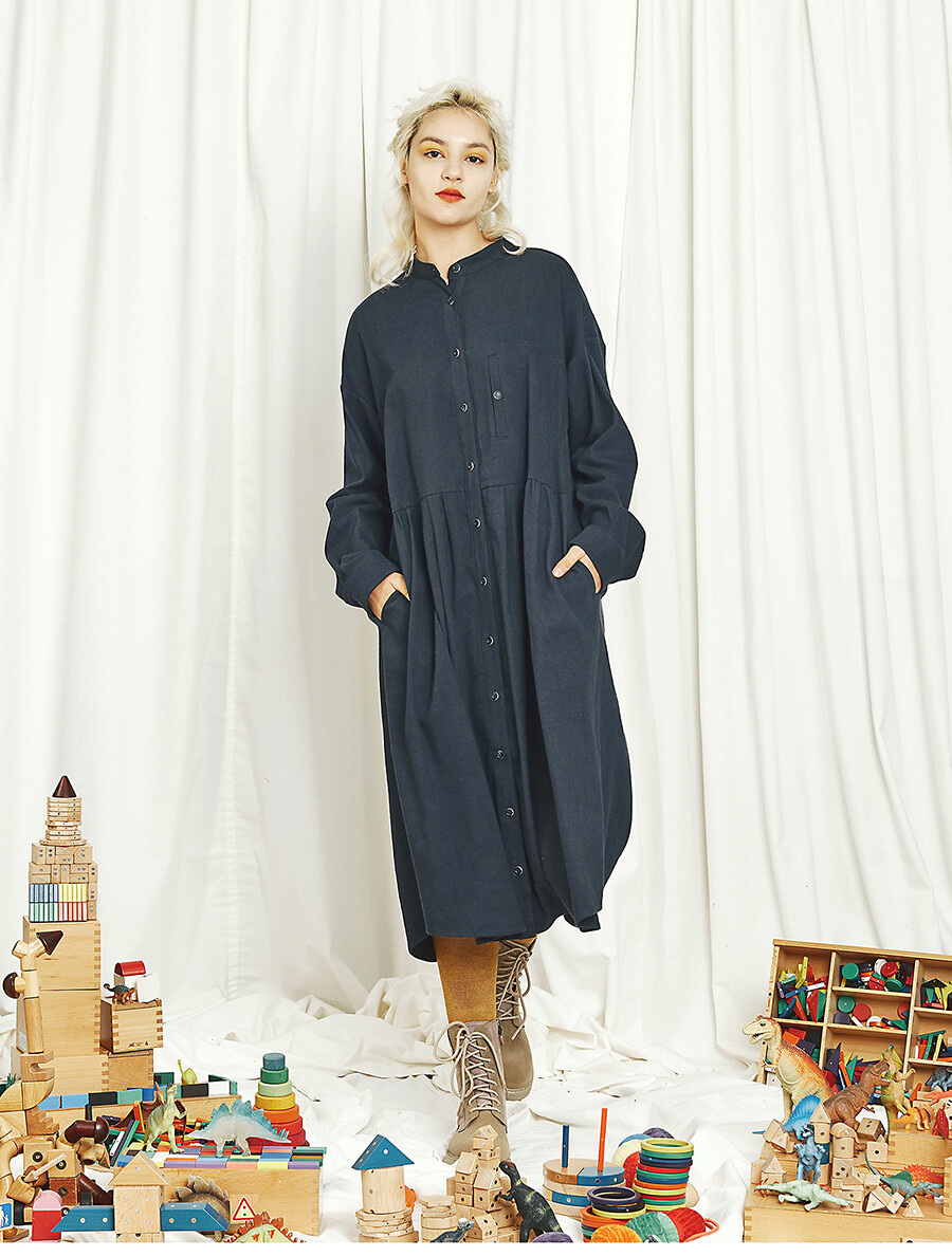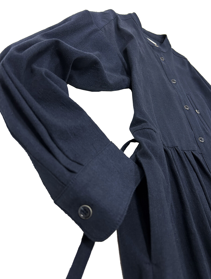 기존 코이노니아 캔버스의 필드트립 드레스가 모두 풀오버 스타일이었다면 이번 디자인은 버튼으로 드레스 전체를 오픈할 수 있는 셔츠드레스와 아웃 코트 개념을 살짝 가져온 필드트립 드레스입니다.
