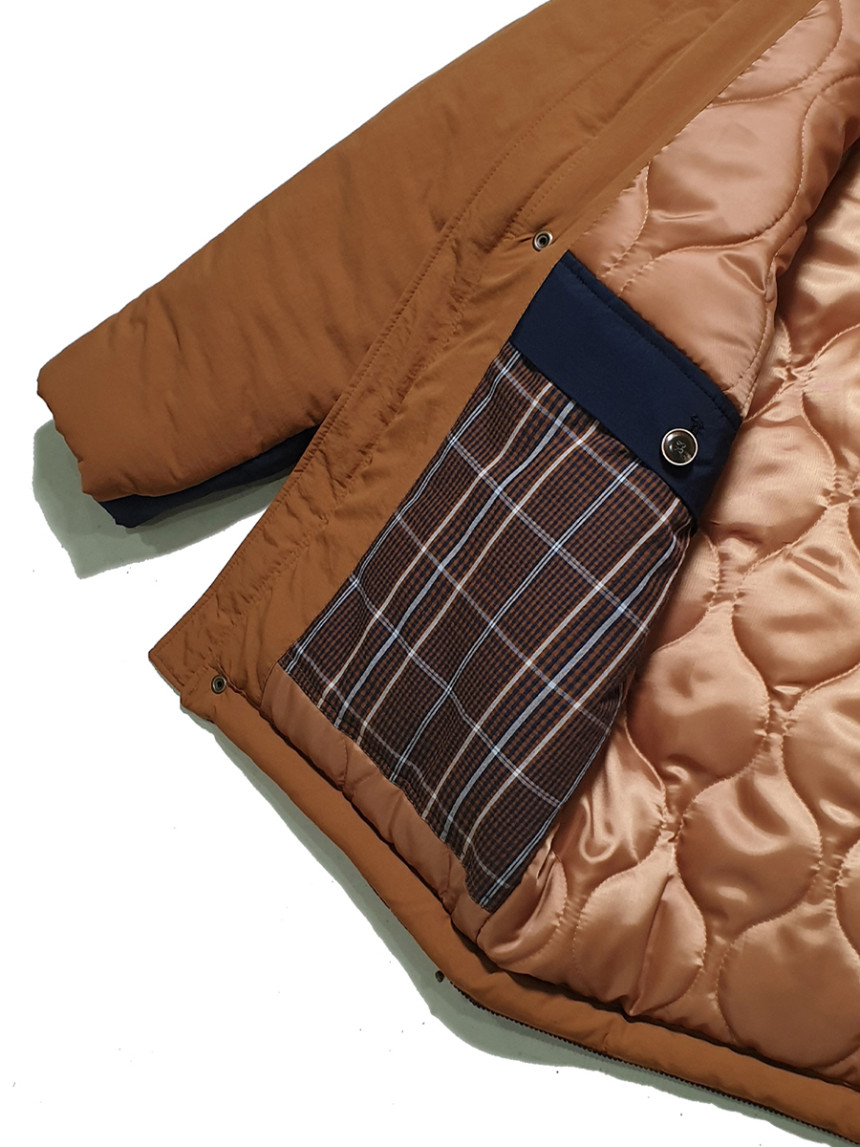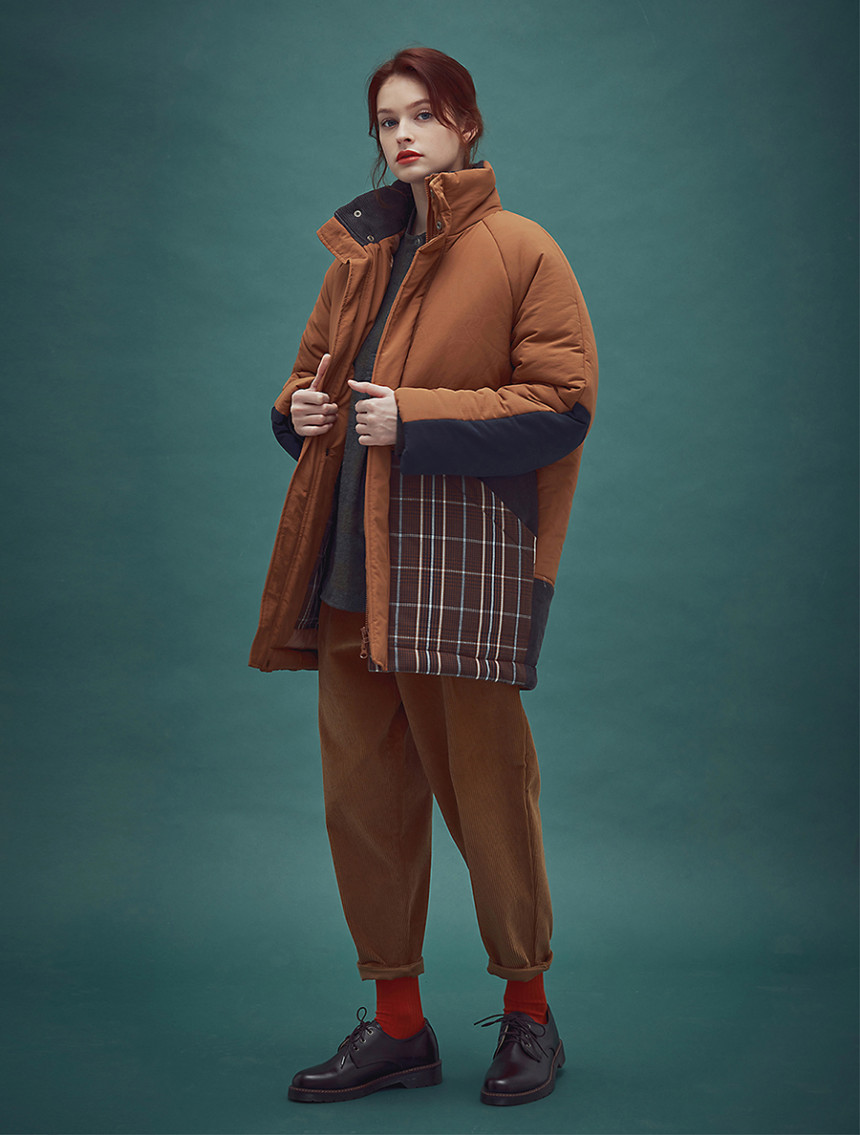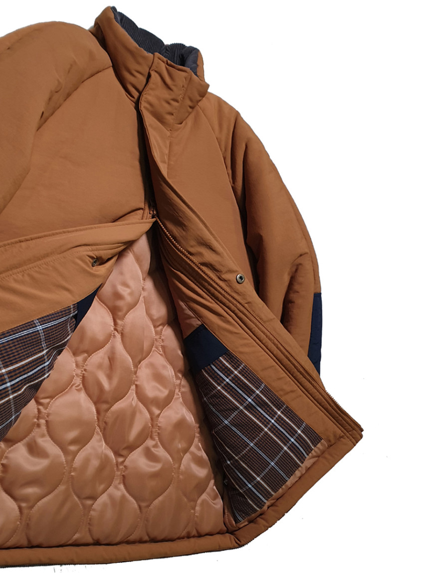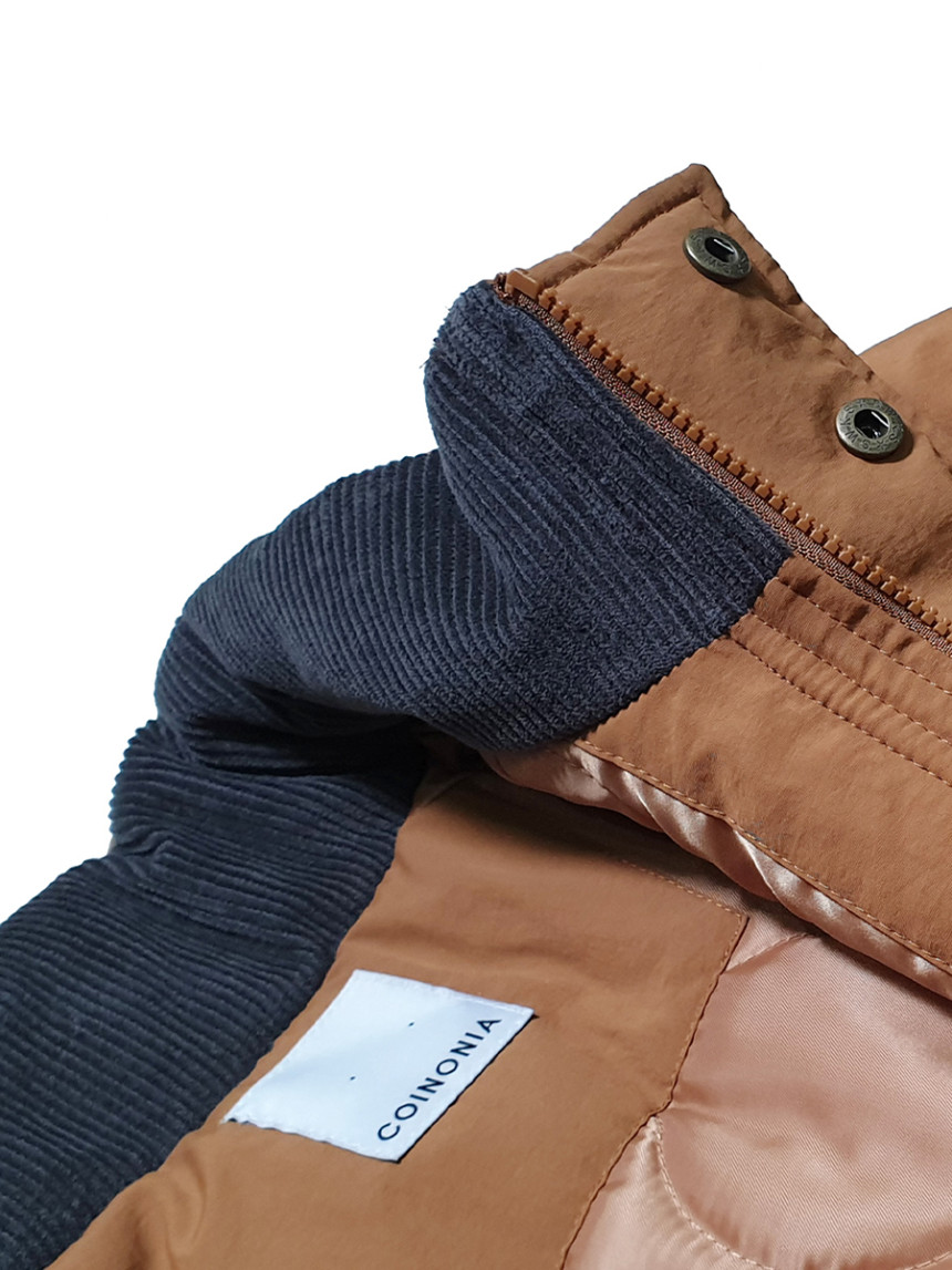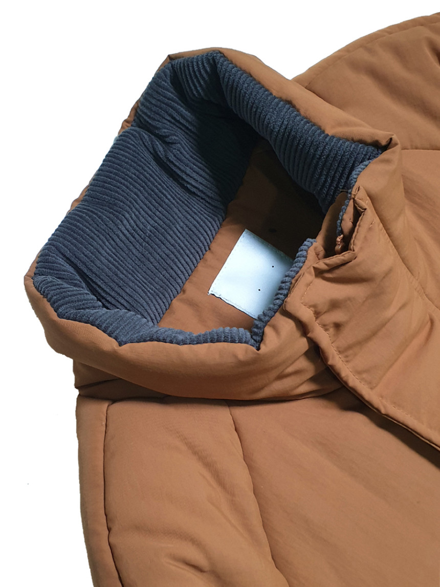 동물의 털을 사용하지 않고 원단의 기능성을 살려 제작한 비건 패딩으로 겉감과 안감 모두 패딩이 사용되어 보온력을 높였습니다.