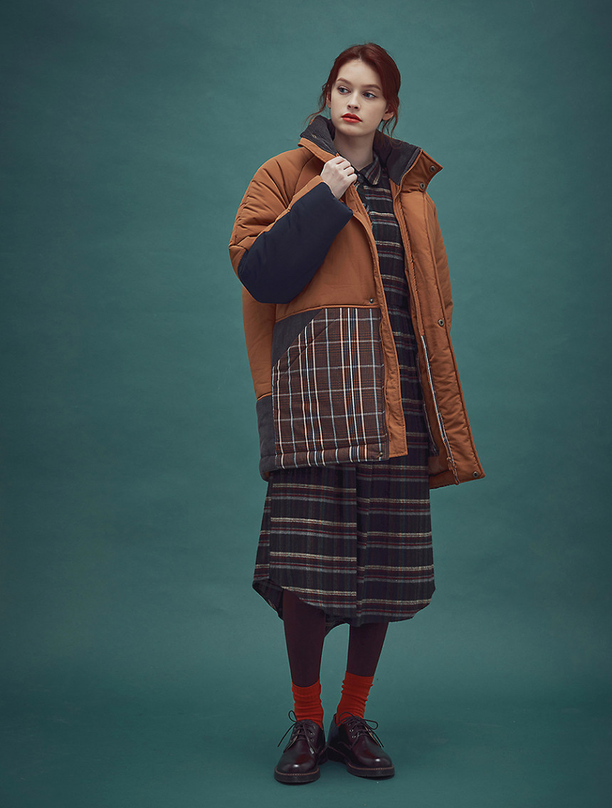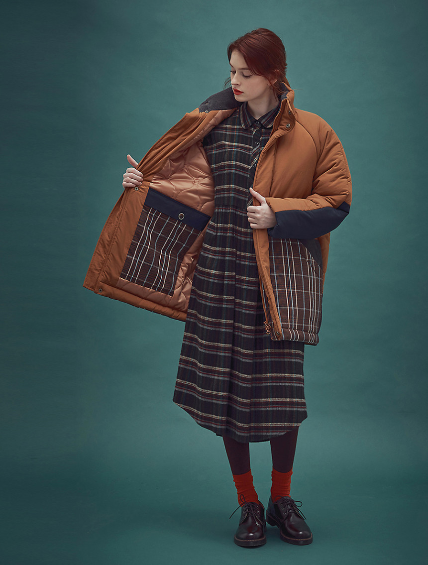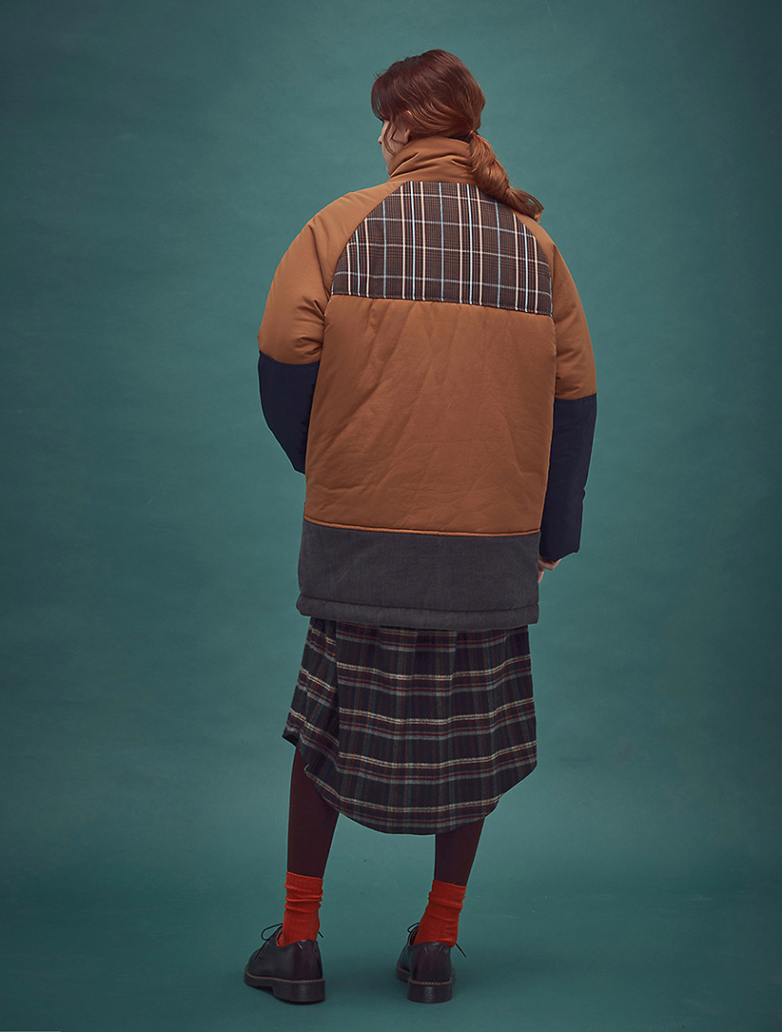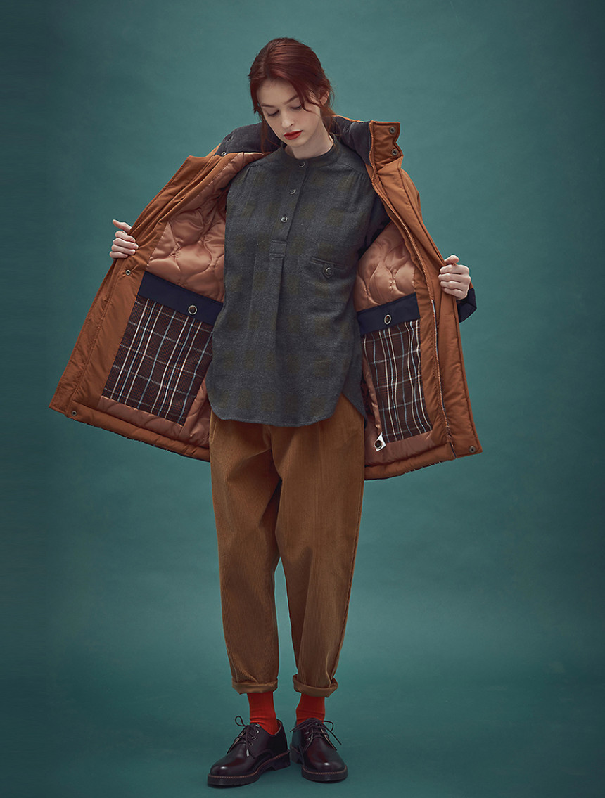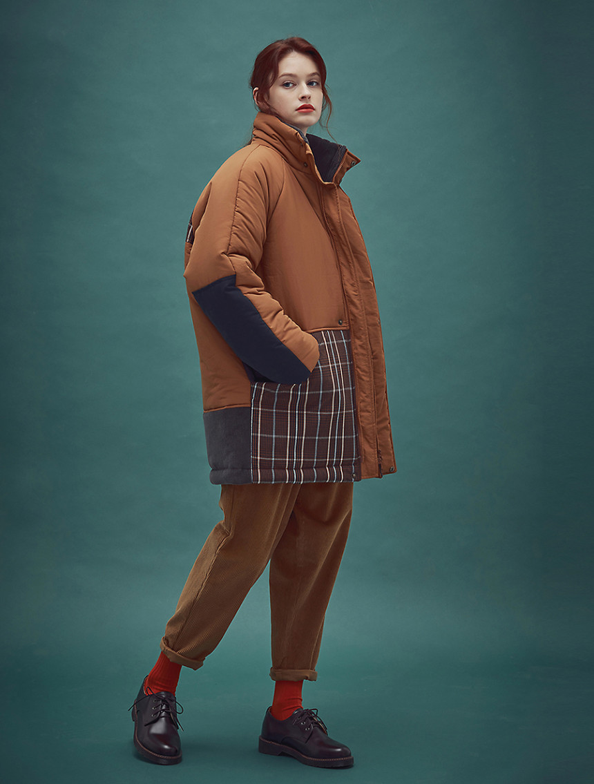 동물의 털을 사용하지 않고 원단의 기능성을 살려 제작한 비건 패딩으로 겉감과 안감 모두 패딩이 사용되어 보온력을 높였습니다.