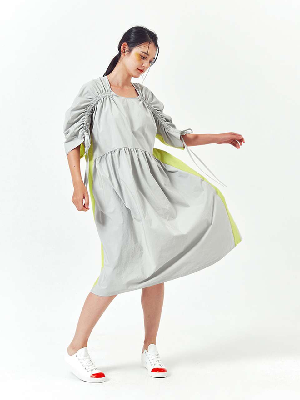 앞 목선을 지나 소매부분으로 꼼꼼히 봉제된 터널의 스트링을 조절함으로써 2가지 핏을 연출 할 수 있습니다.