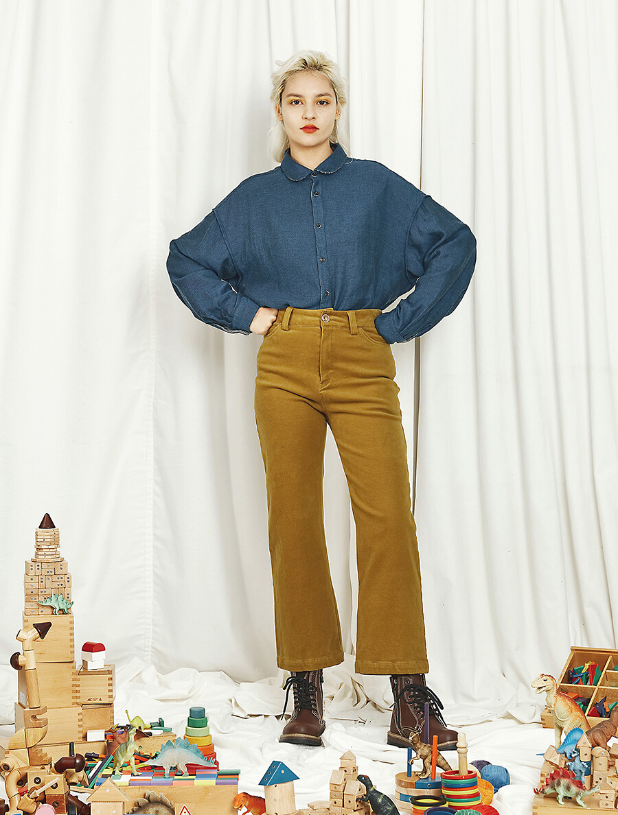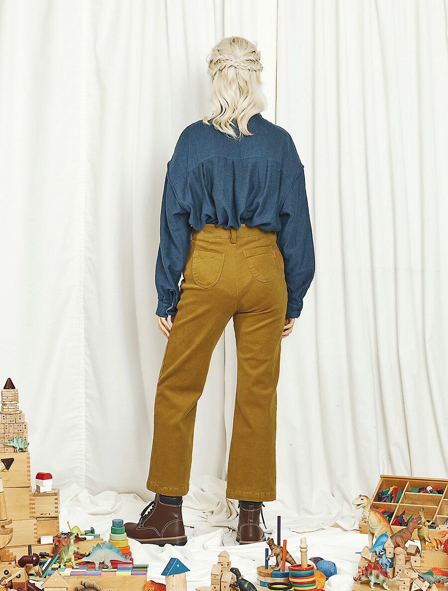 10s peach cotton straight stretch pants_Mustard