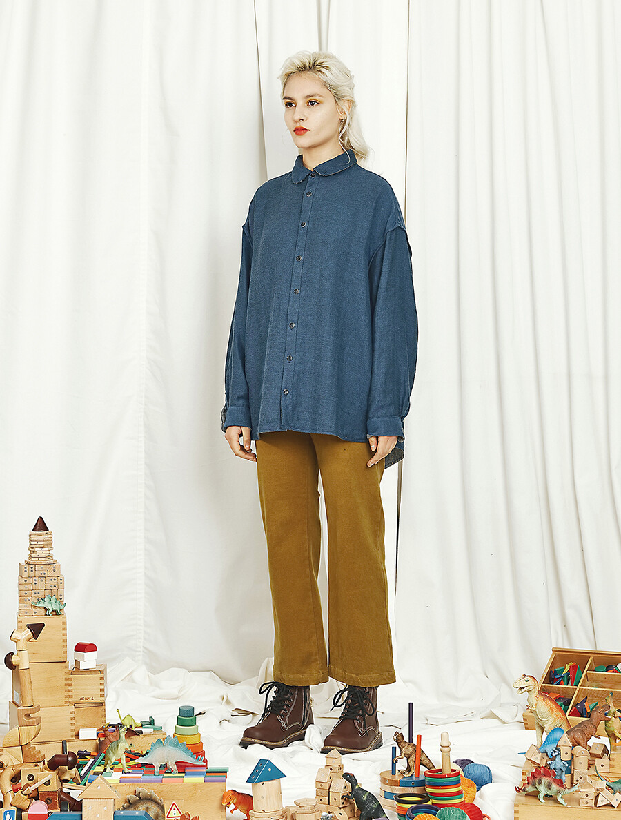 10수 두께의 기모 스판 코튼 팬츠로 제작 후 워싱 처리된 제품입니다.