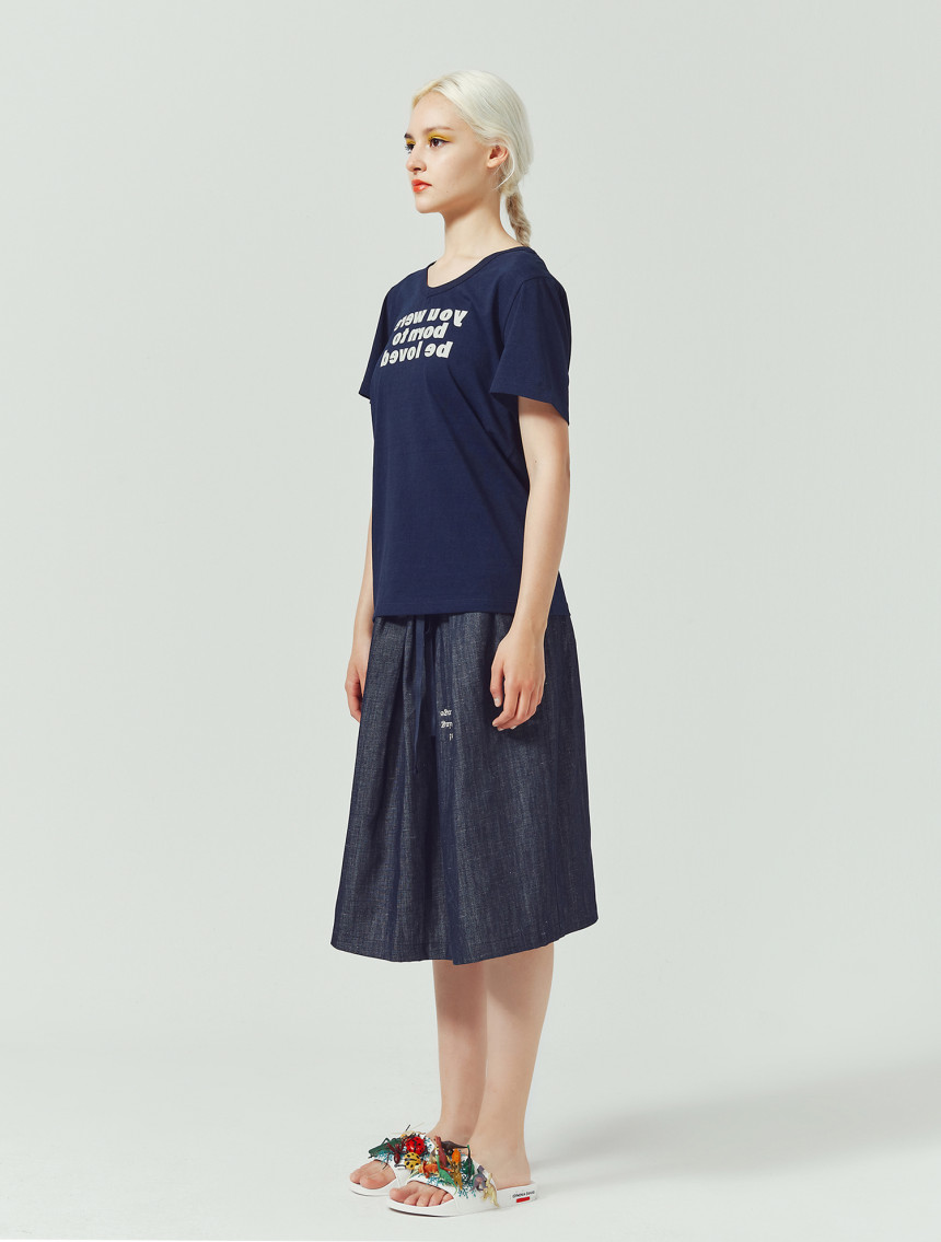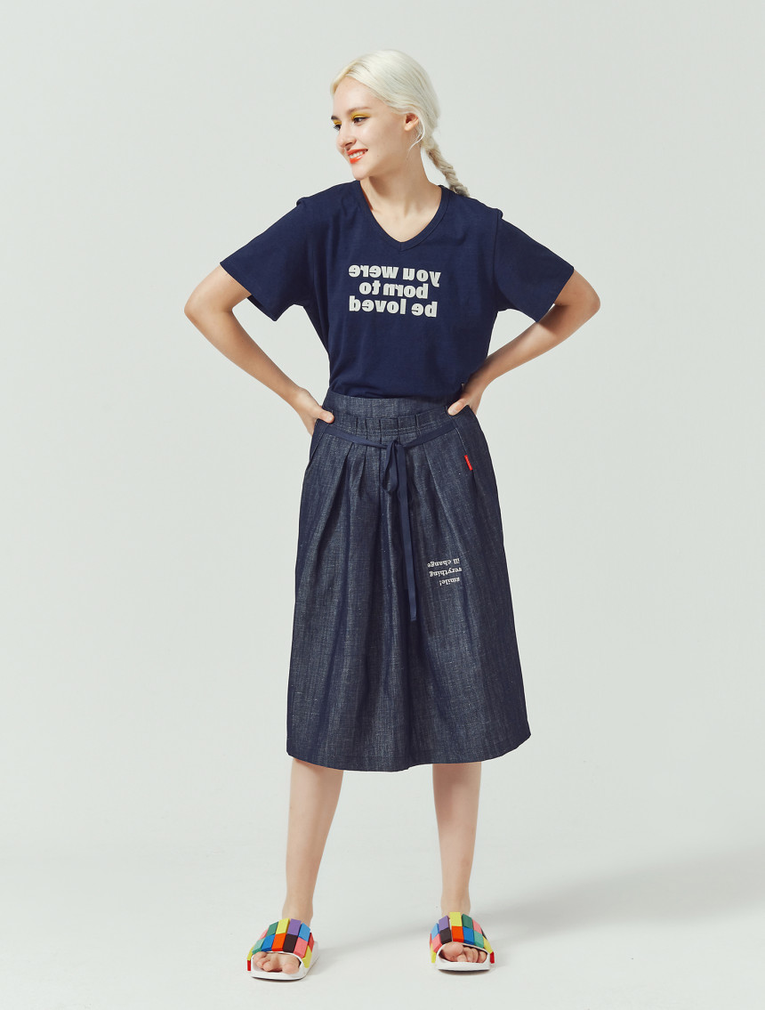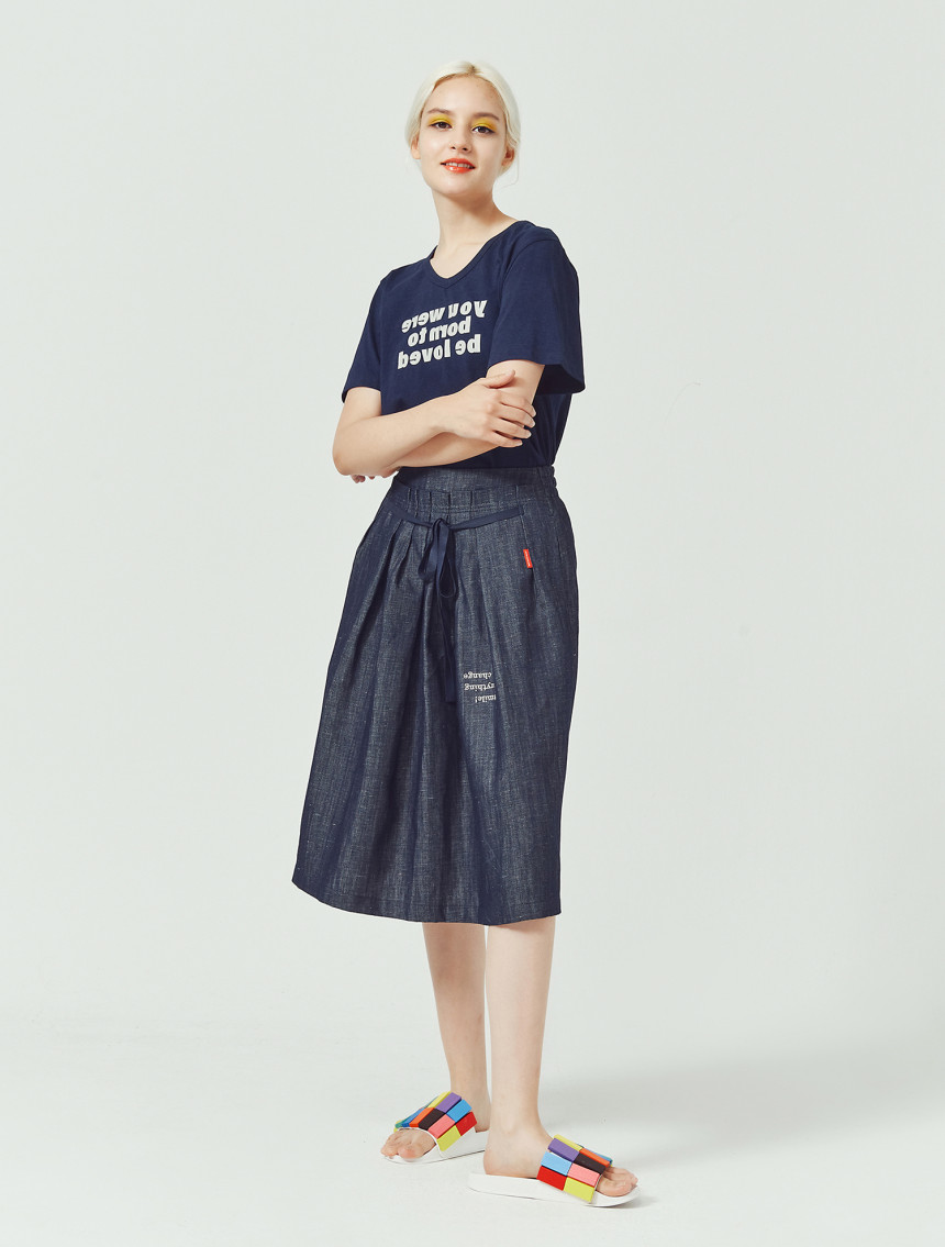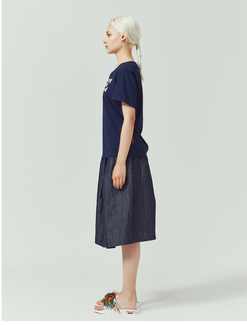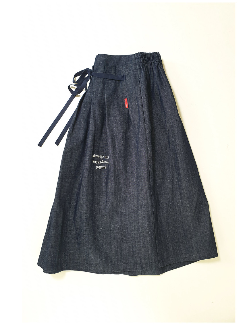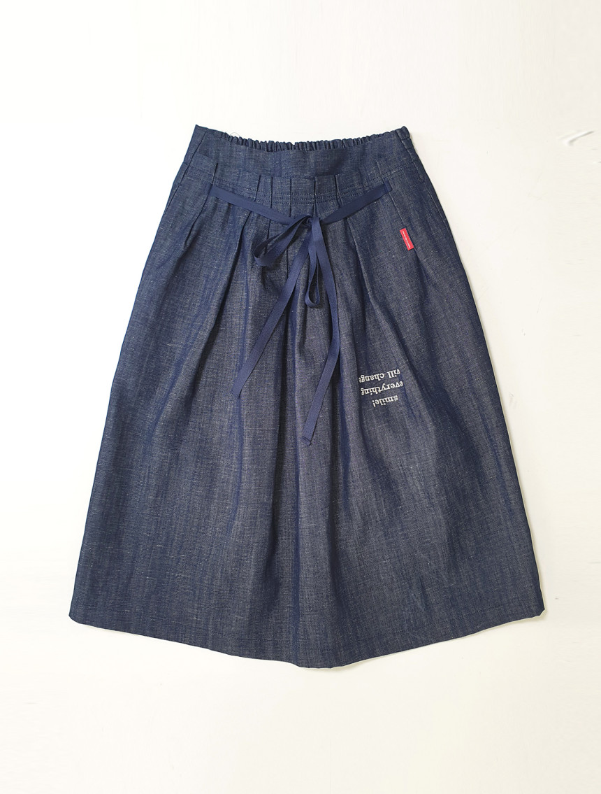 코튼, 린넨의 혼방소재를 사용하여 만든 스커트로 데님의 질감이 그대로 느껴지지만 시원하고 쾌적한 [Smile denim skirt]입니다..