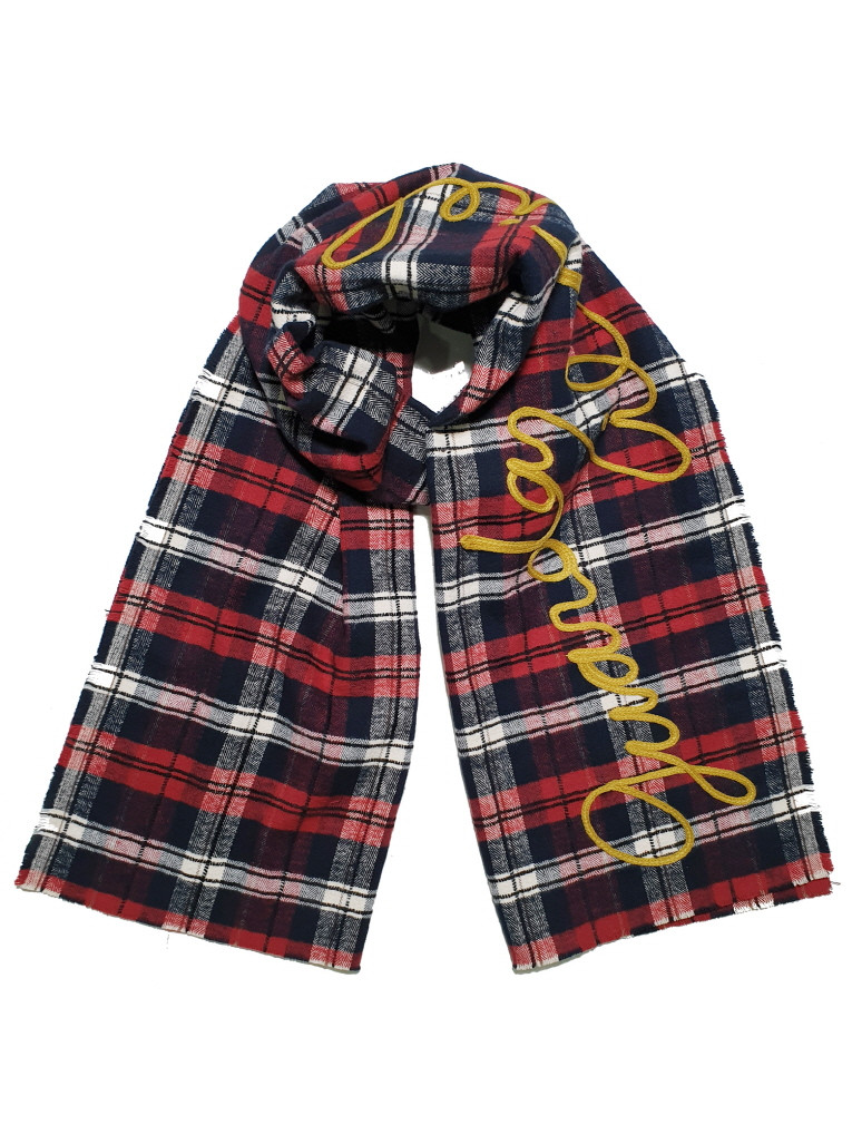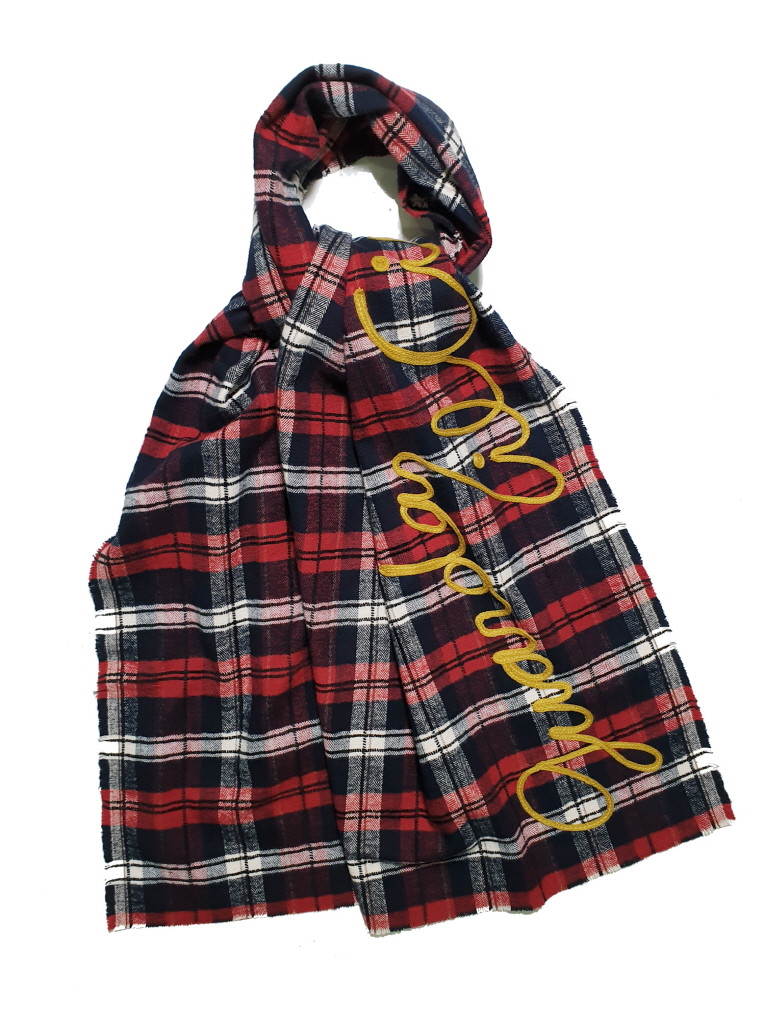 Tartan lettering scarf_Wine