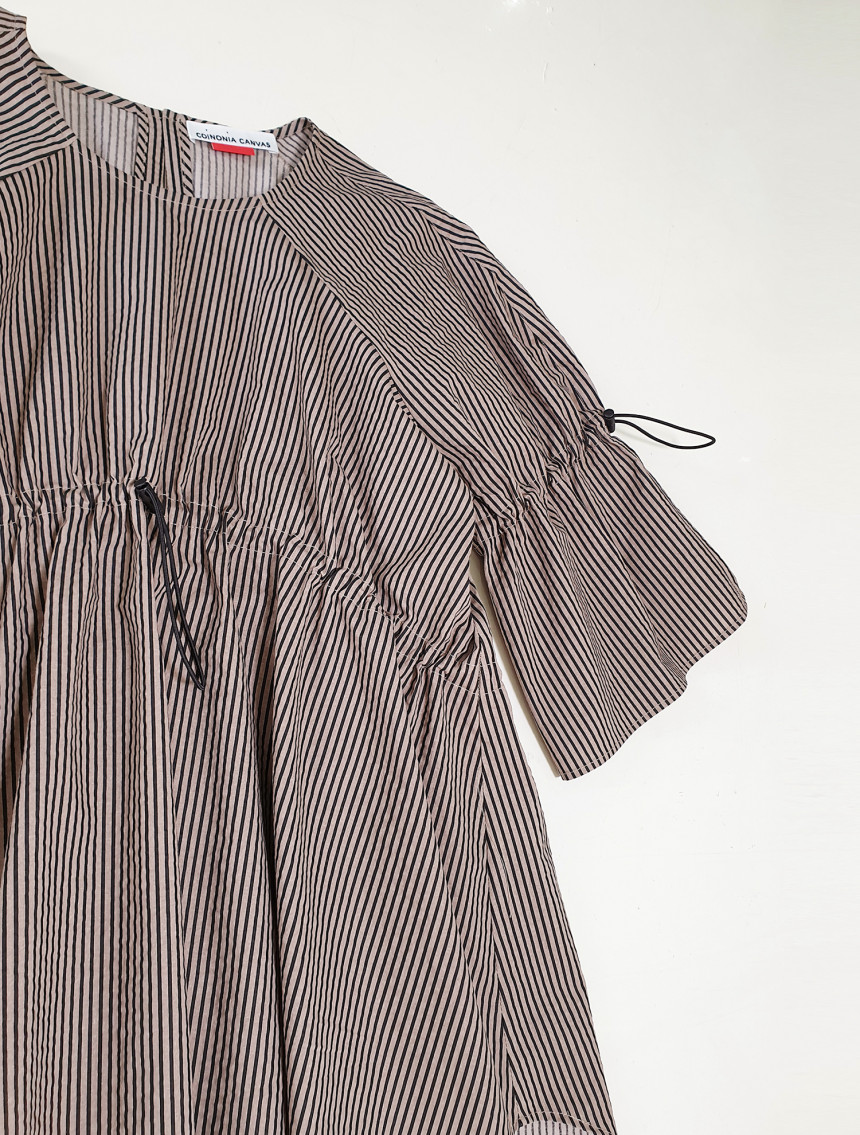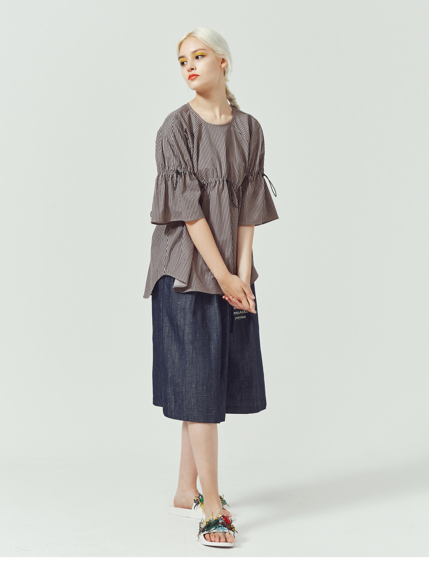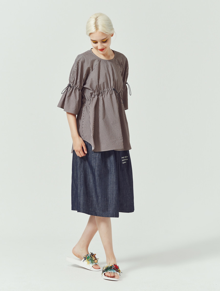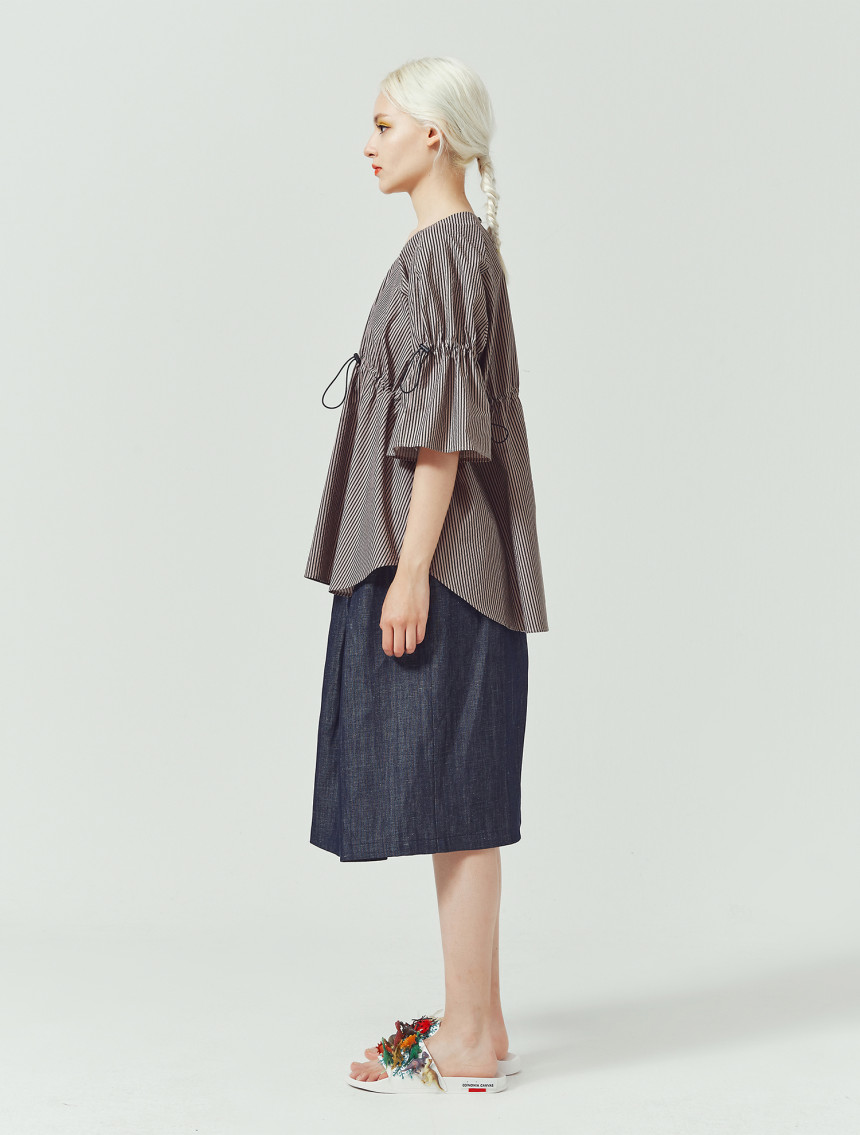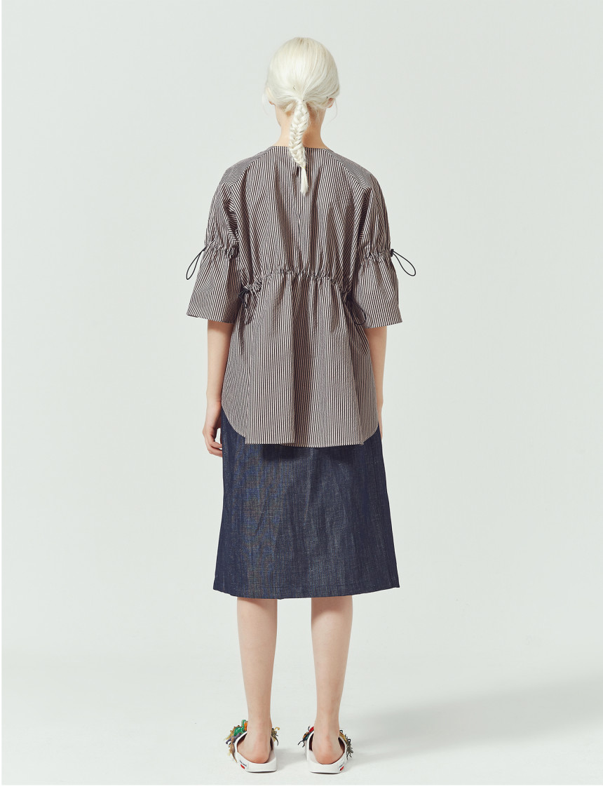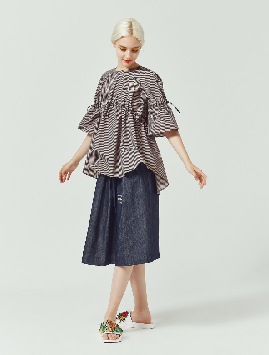 가볍고 쾌적한 슬럽 인디고 소재로 제작된 착용자의 체형과 스타일에 따라 스톱퍼로 주름의 양을 조절해서 자신만의 볼륨감을 만들 수 있는 특성이 있습니다.