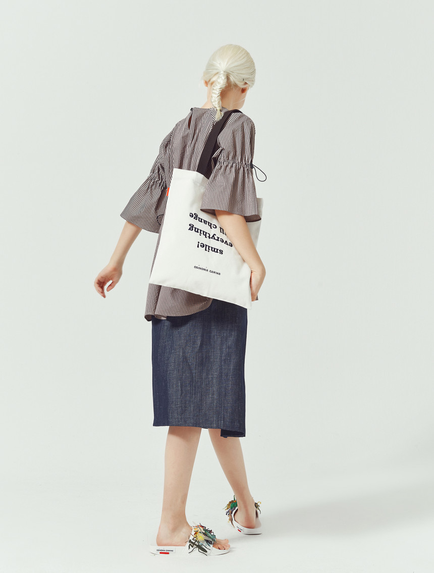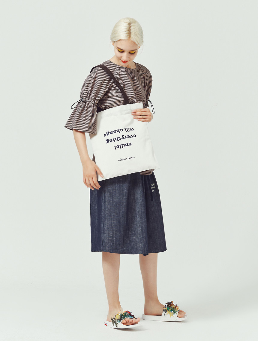 " Smile canvas bag-ivory & Smile denim skirt-Linen&cotton"