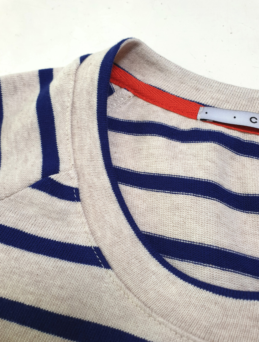 셔츠 옆트임 부분도 컬러 바텍으로 귀엽게 처리되어 있습니다.