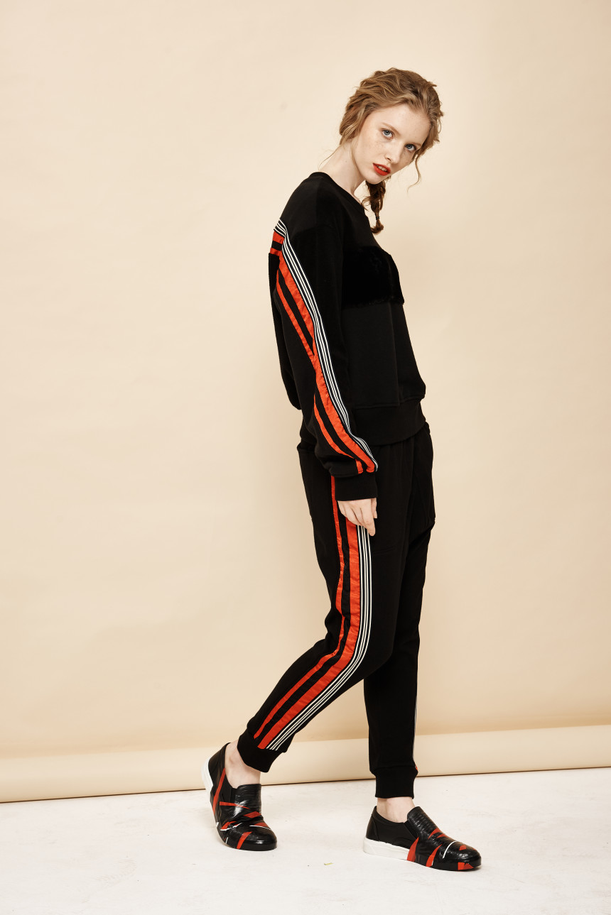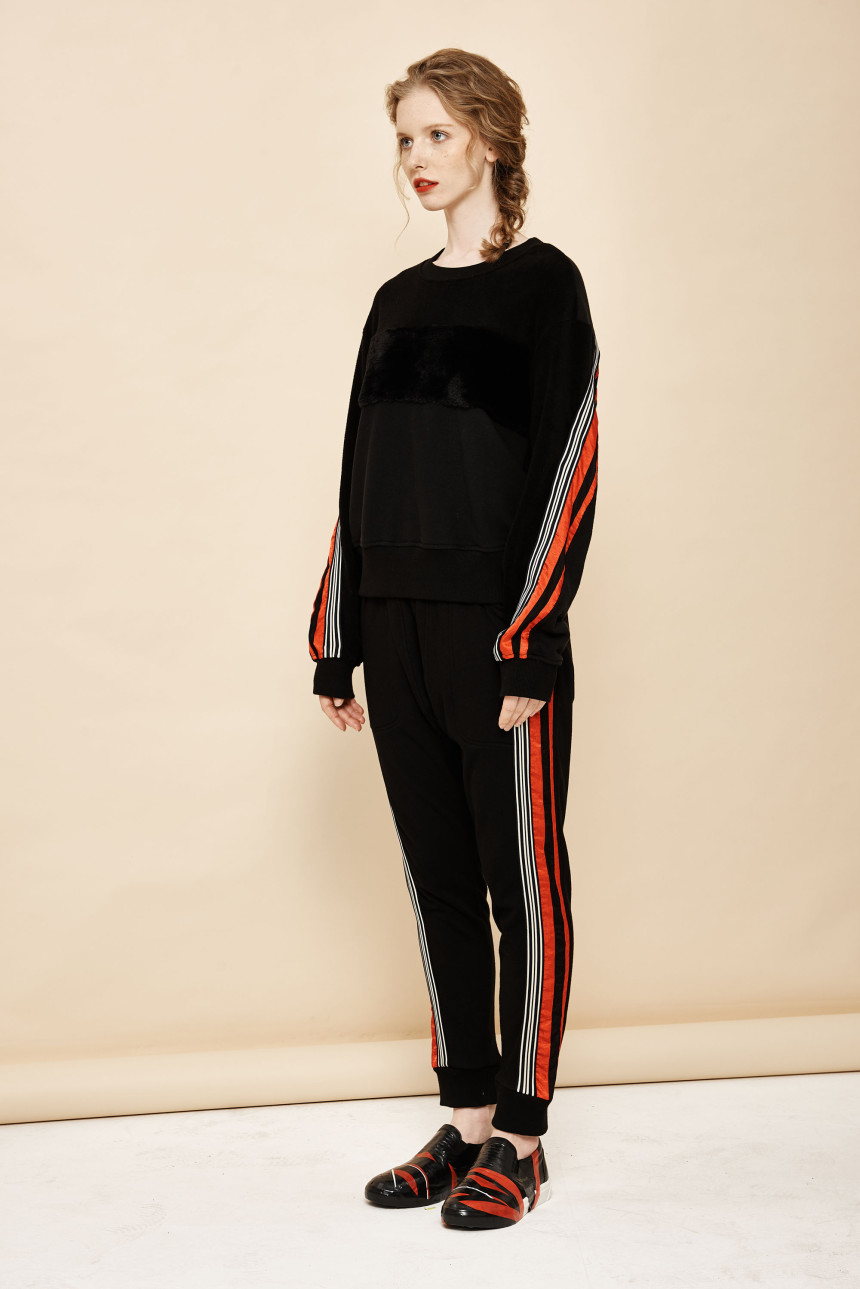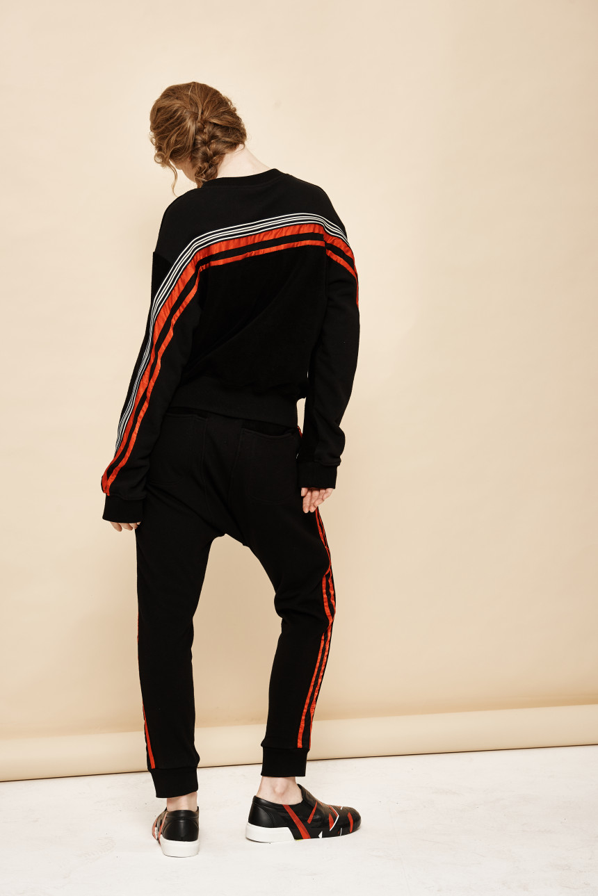 사진에서 보시는 바와 같이 일반적인 줄무늬 프린트나 준비된 테잎을 봉제한 것이 아니라 원단을 하나하나 봉제한후꺽어서 다시 봉제한 수공예적 요소가 들어간 스트라이프입니다. 그래서 아래 사진을 보시면 스트라이프가 완벽하게 매끈하지 않고 살짝 살짝 요철이 있는게 보입니다. 원단 텐션 차이로 나타나는 현상인데 손맛이 느껴지는 일반 프린트나 리본에서는 찾아볼 수 없는 고감도 스트라이프 입니다.