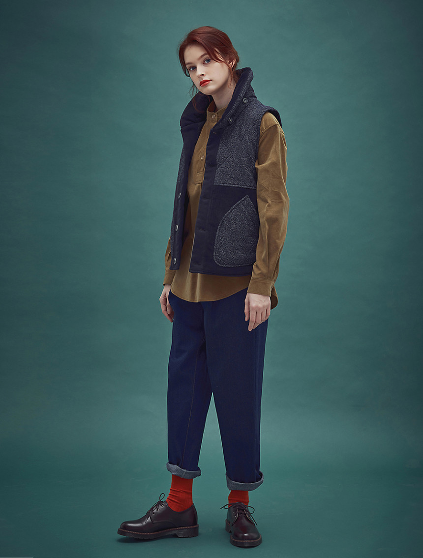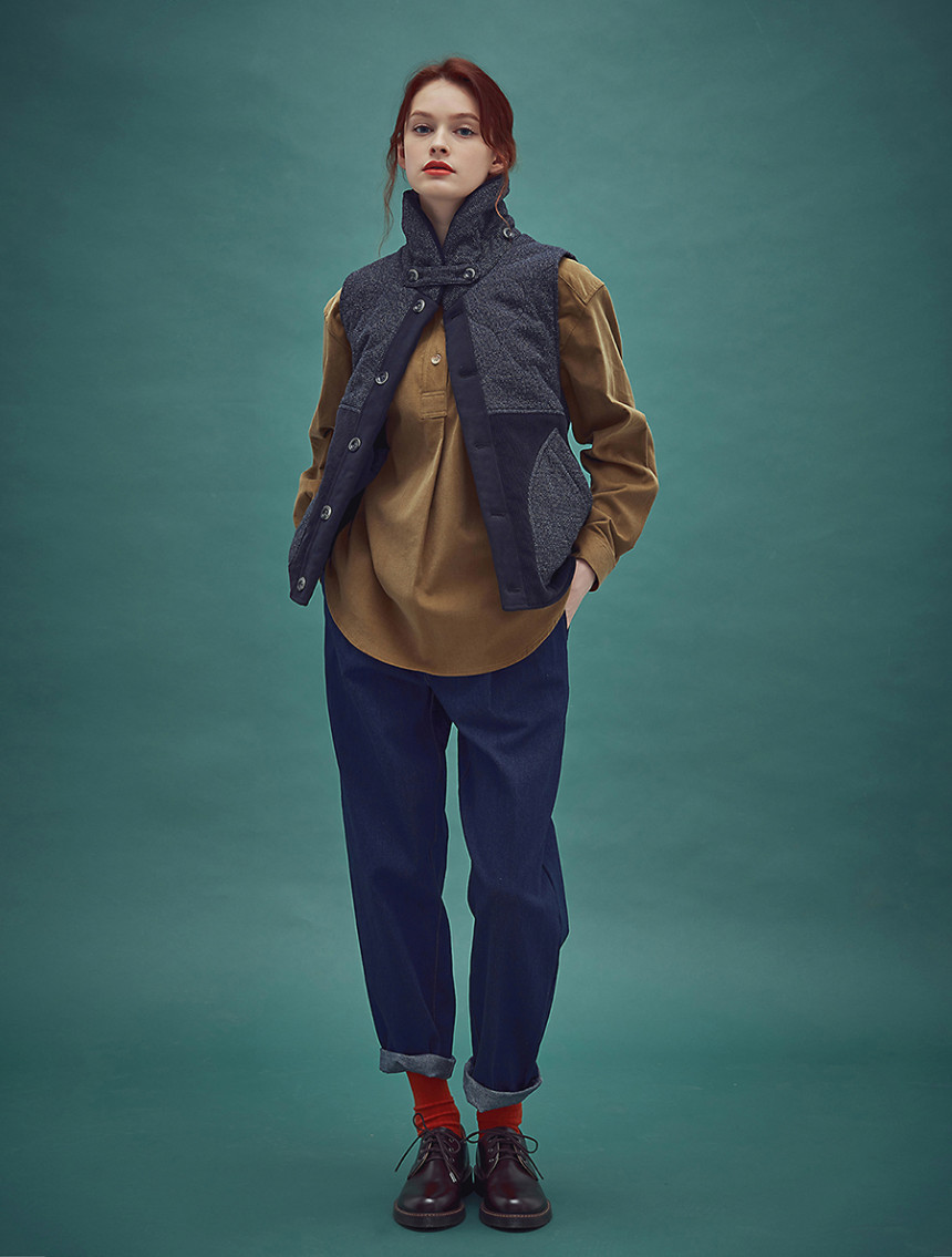 7수정도의 두께감으로 인디고 블루생지 원단을 워싱하여 복고풍의 컬러로 만들어 보았습니다.