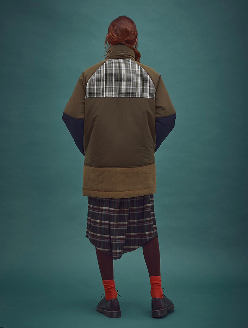 동물의 털을 사용하지 않고 원단의 기능성을 살려 제작한 비건 패딩으로 겉감과 안감 모두 패딩이 사용되어 보온력을 높였습니다.
