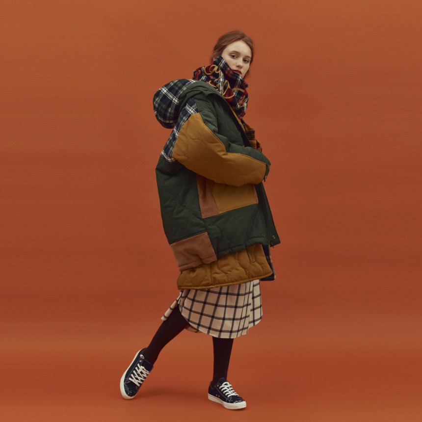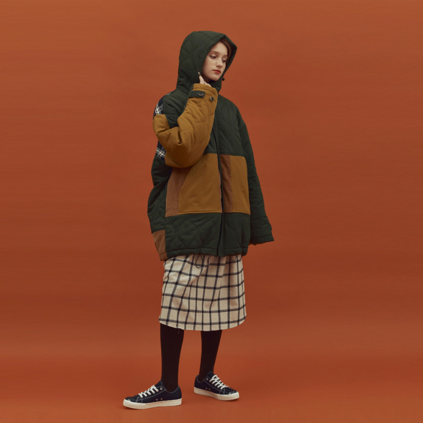 후드 부분의 안쪽에도 6온스 발열 패딩이 패딩된 기모 타탄 코튼이 배치되어 있어서 목부분을 따뜻하게 감싸주고 모자를 뒤집어 입으시면 예쁜 타탄체크가 나와서 귀엽습니다.