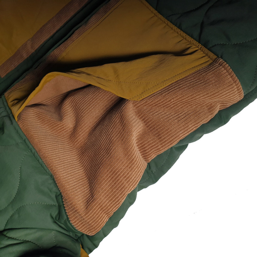 기능에 따라서 각 각 부위별로 다른 원단이 사용 되었습니다. 앞 주머니 손바닥이 부분에는 기모 코듀로이 원단이 사용되고 손등부분도 기모코튼이 사용되어서 부드러우면서도 따뜻한 느낌을 착용자에게 줍니다.