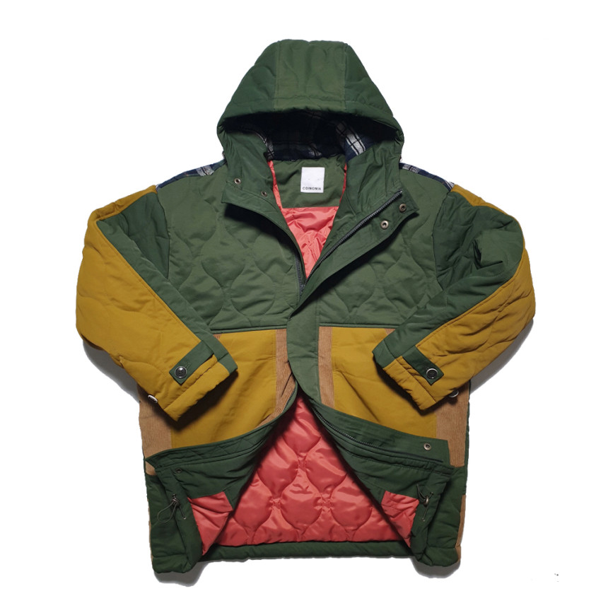 8가지의 원단으로 만들어진 [12온스 발열 패딩 파카]입니다.