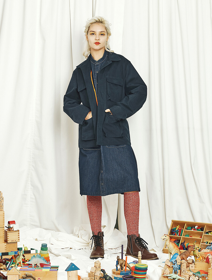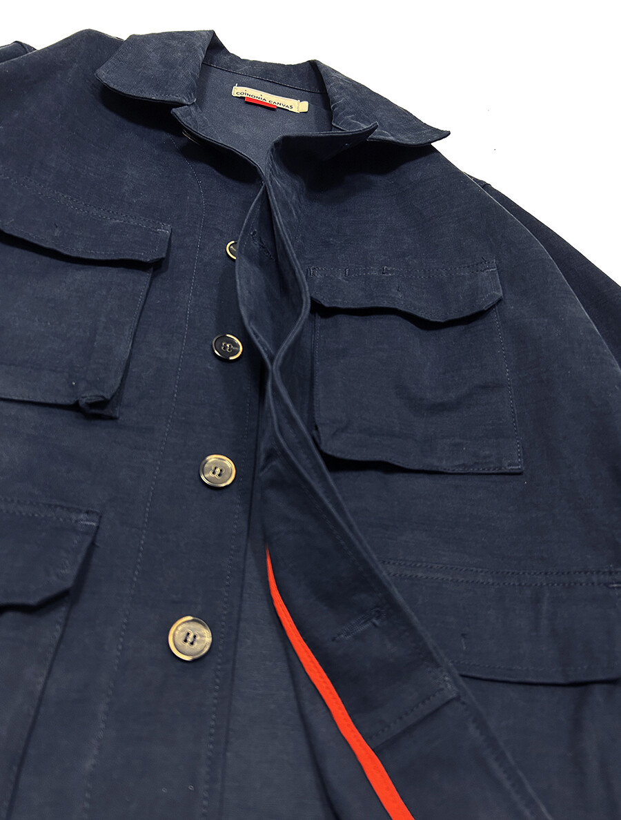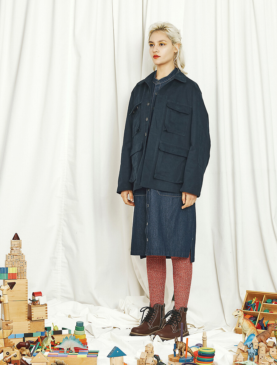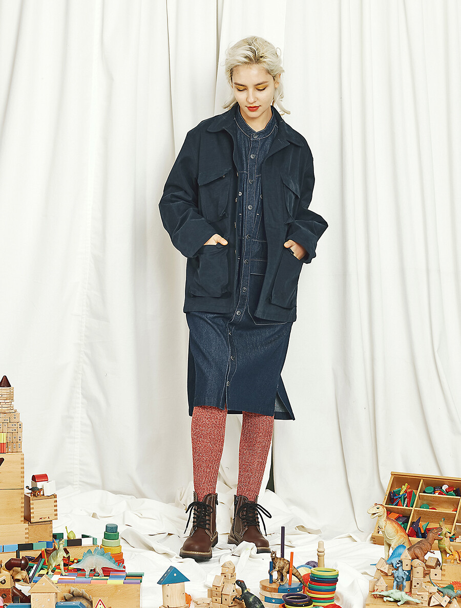 이러한 소재를 사용하여 가볍지만 4개의 입체 포켓과 견고한 슬리브 디테일, 잘 보이진 않지만 있을곳에 있는 네이비 바텍, 쟈켓을 벗을때 보이는 빈티지 느낌의 로고프린트등 견고하면서도 실용적인 무게감이 있는 필드쟈켓으로 제작하였습니다.