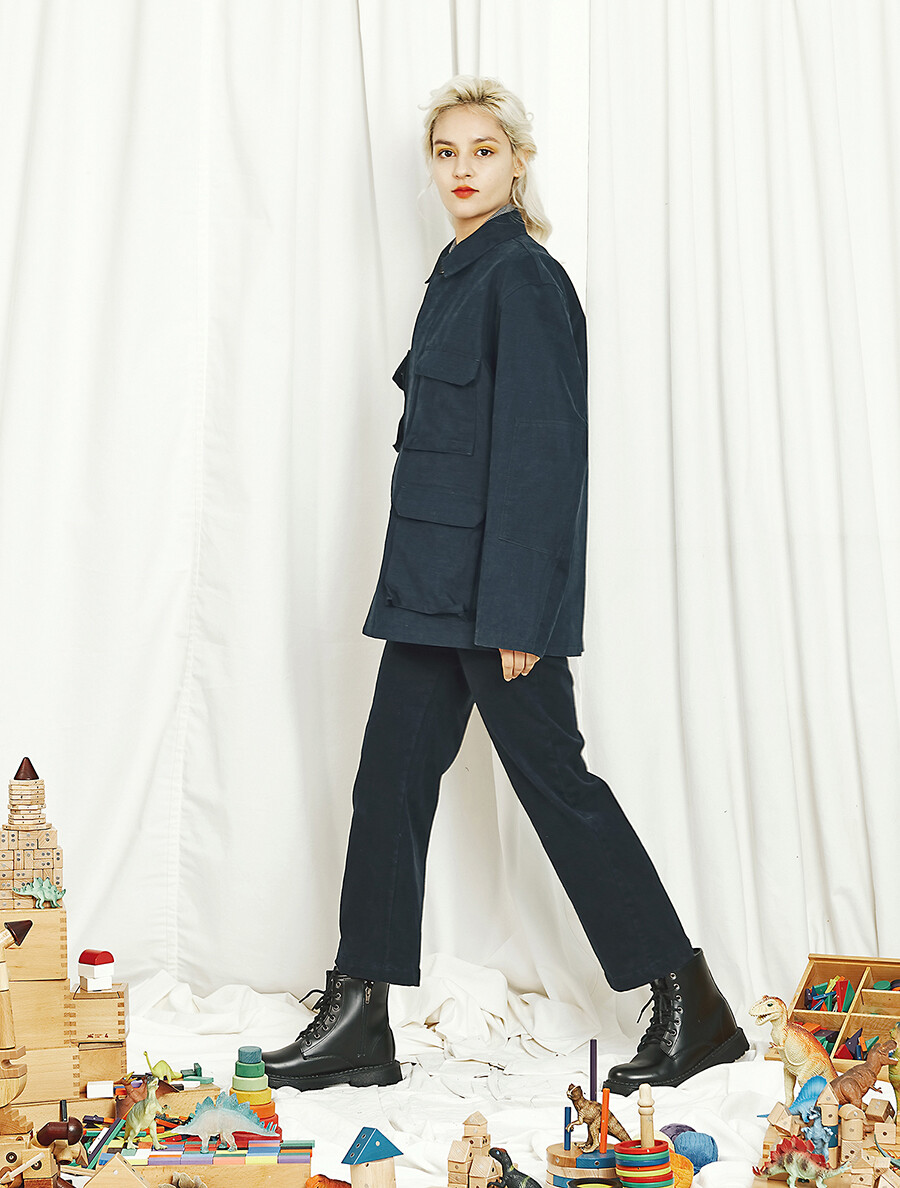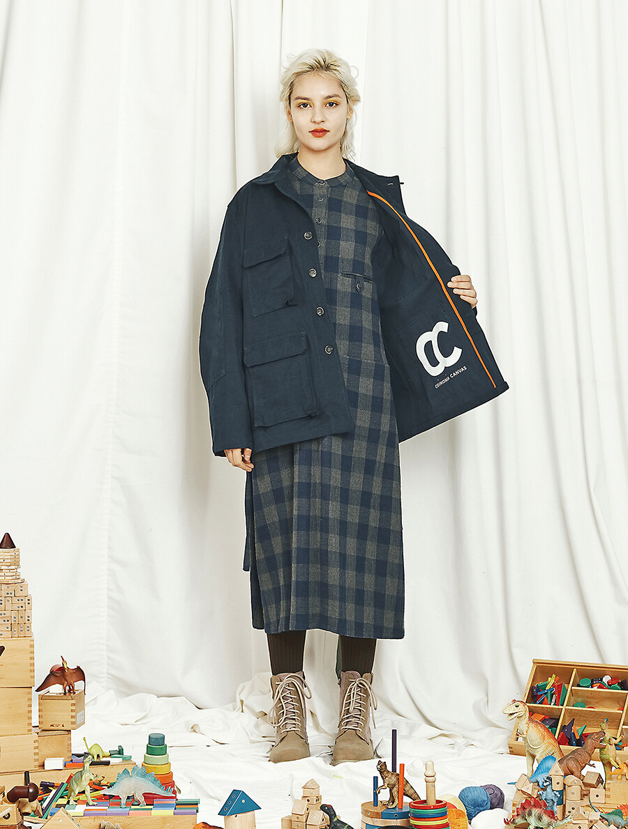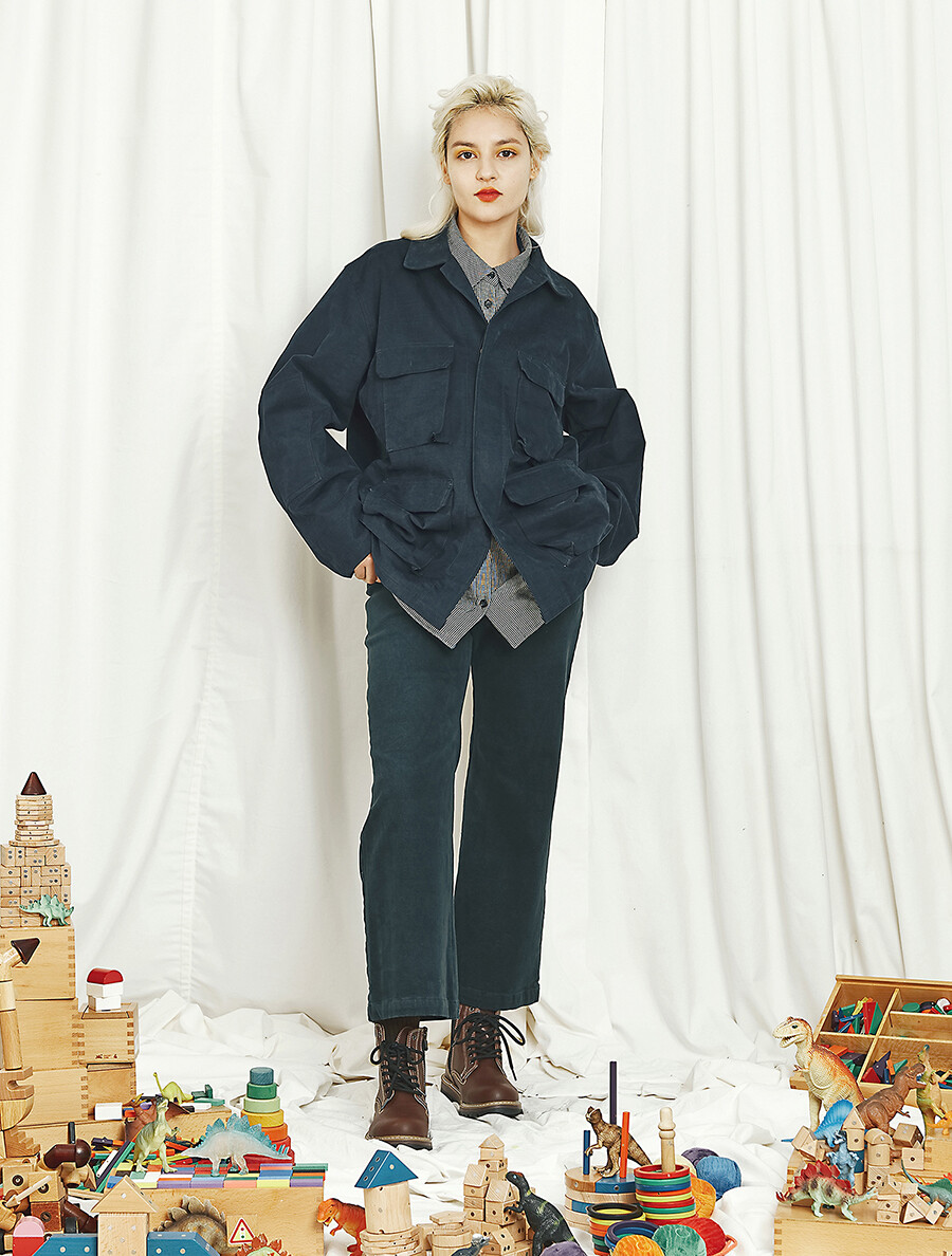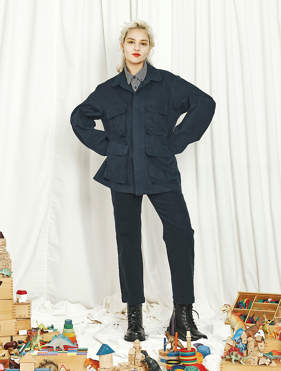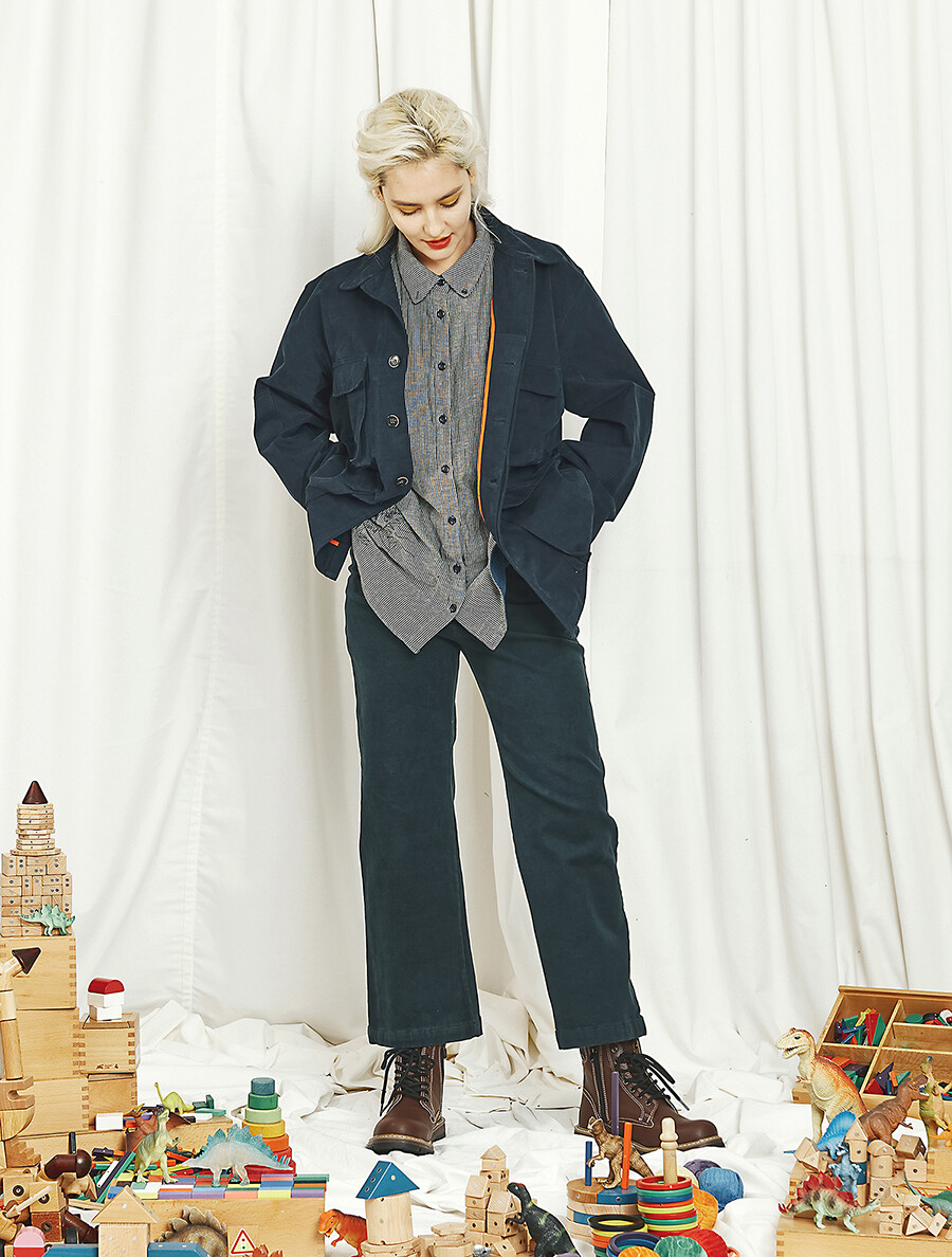 이러한 소재를 사용하여 가볍지만 4개의 입체 포켓과 견고한 슬리브 디테일, 잘 보이진 않지만 있을곳에 있는 네이비 바텍, 쟈켓을 벗을때 보이는 빈티지 느낌의 로고프린트등 견고하면서도 실용적인 무게감이 있는 필드쟈켓으로 제작하였습니다.