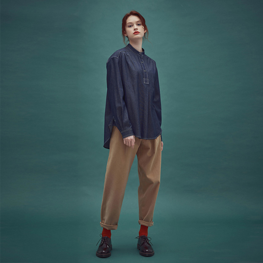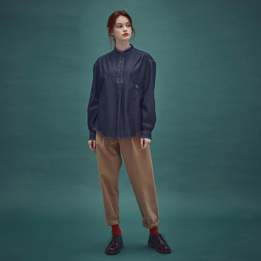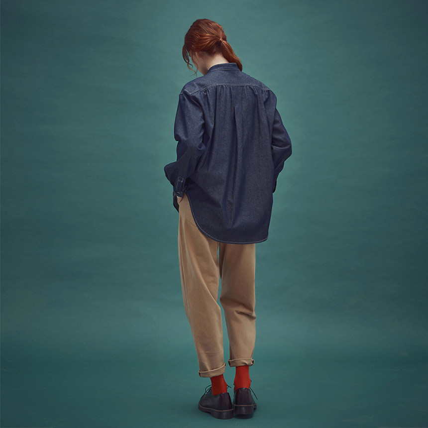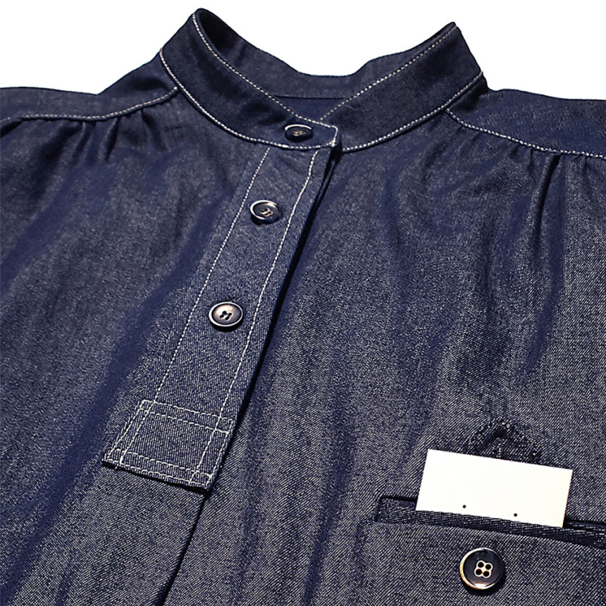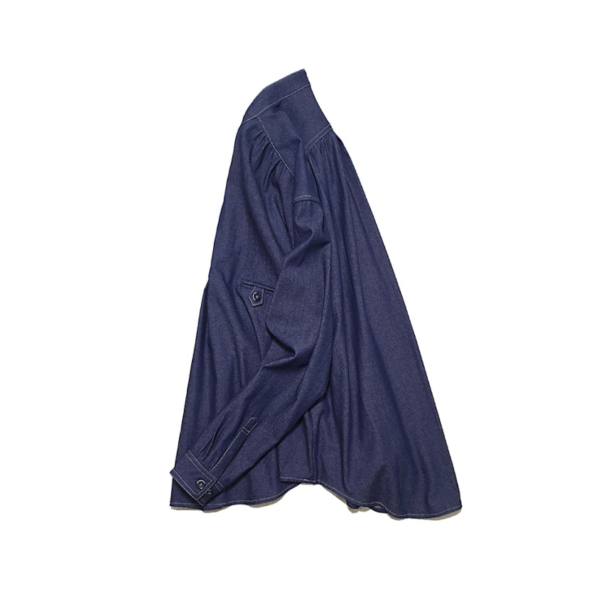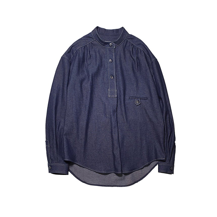Pullover indigo shirring shirt